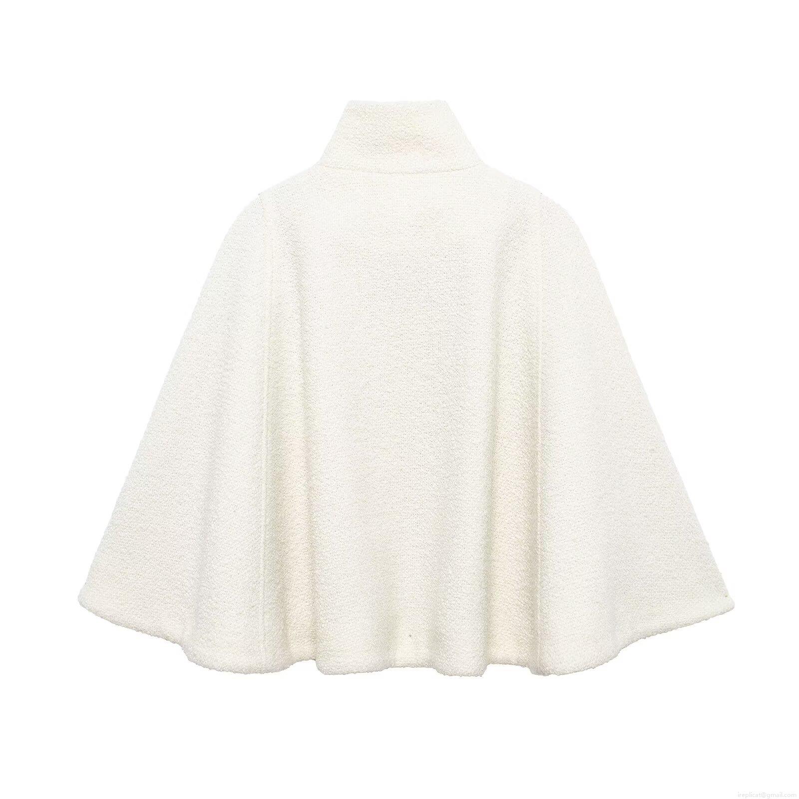 • Women's Fashion Wool Blend Cape Jacket Stand Collar Solid Color Streetwear Cloak Outerwear For Spring Autumn Casual Warm Loose Top Coat