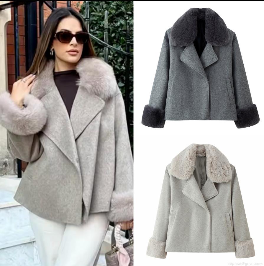 • Women's Fashion Woolen Coat With Faux Fur Collar And Cuffs Elegant Long Sleeve Belted Overcoat For Autumn Winter Office Lady Casual Outwear