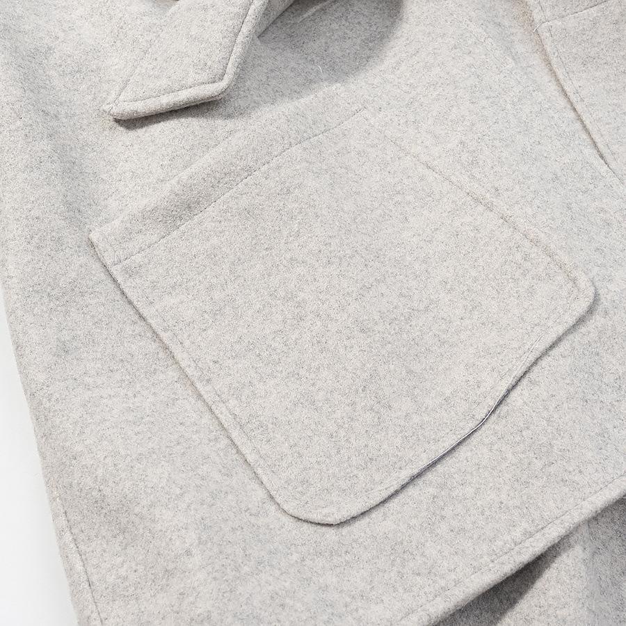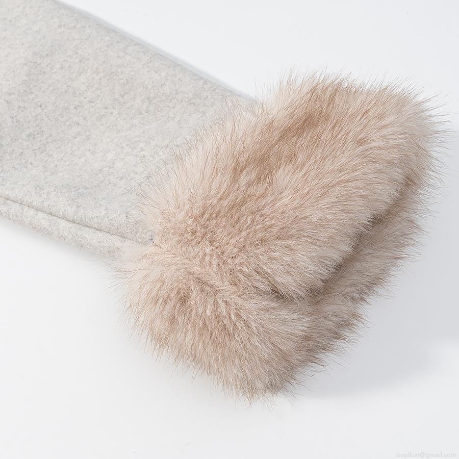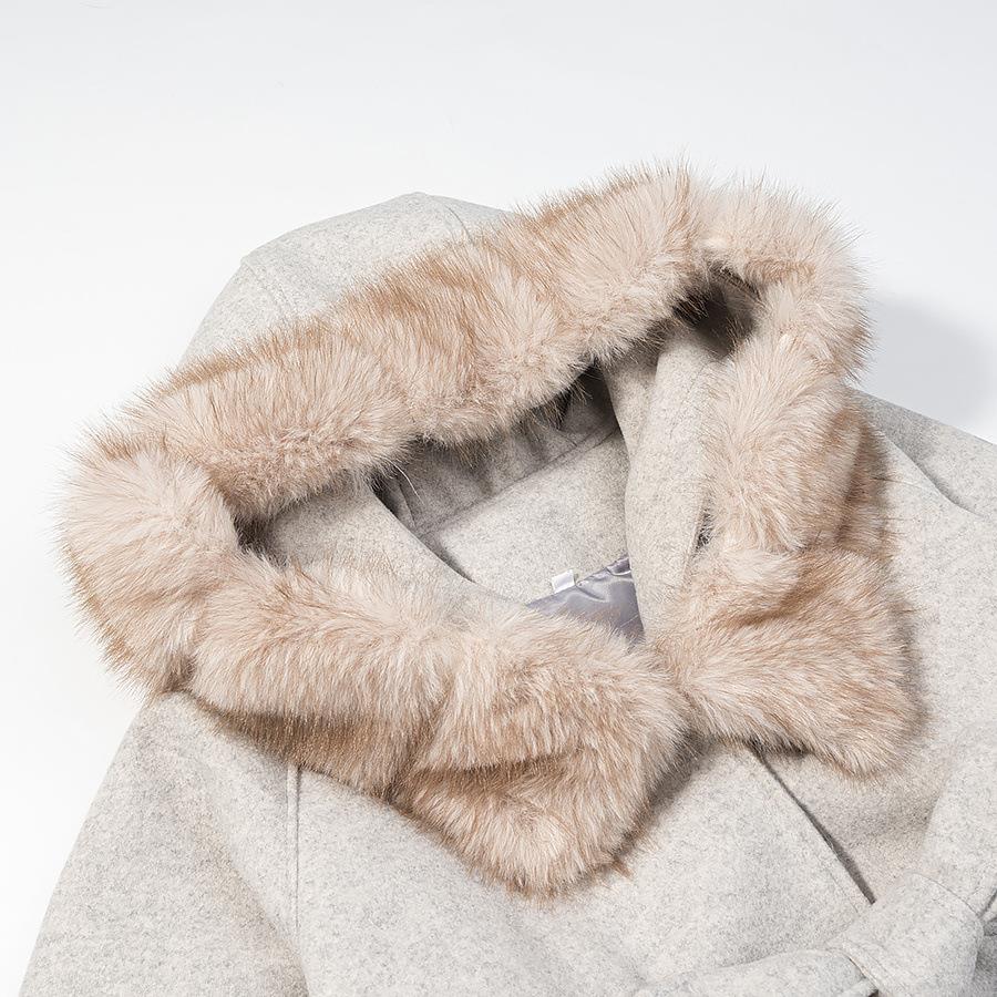 • Women's Fashion Woolen Coat With Faux Fur Collar Hooded Mid-Length Winter Jacket Thick Warm Outerwear With Bow Tie Belt Light Grey