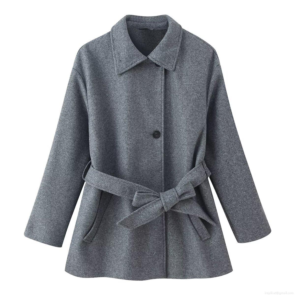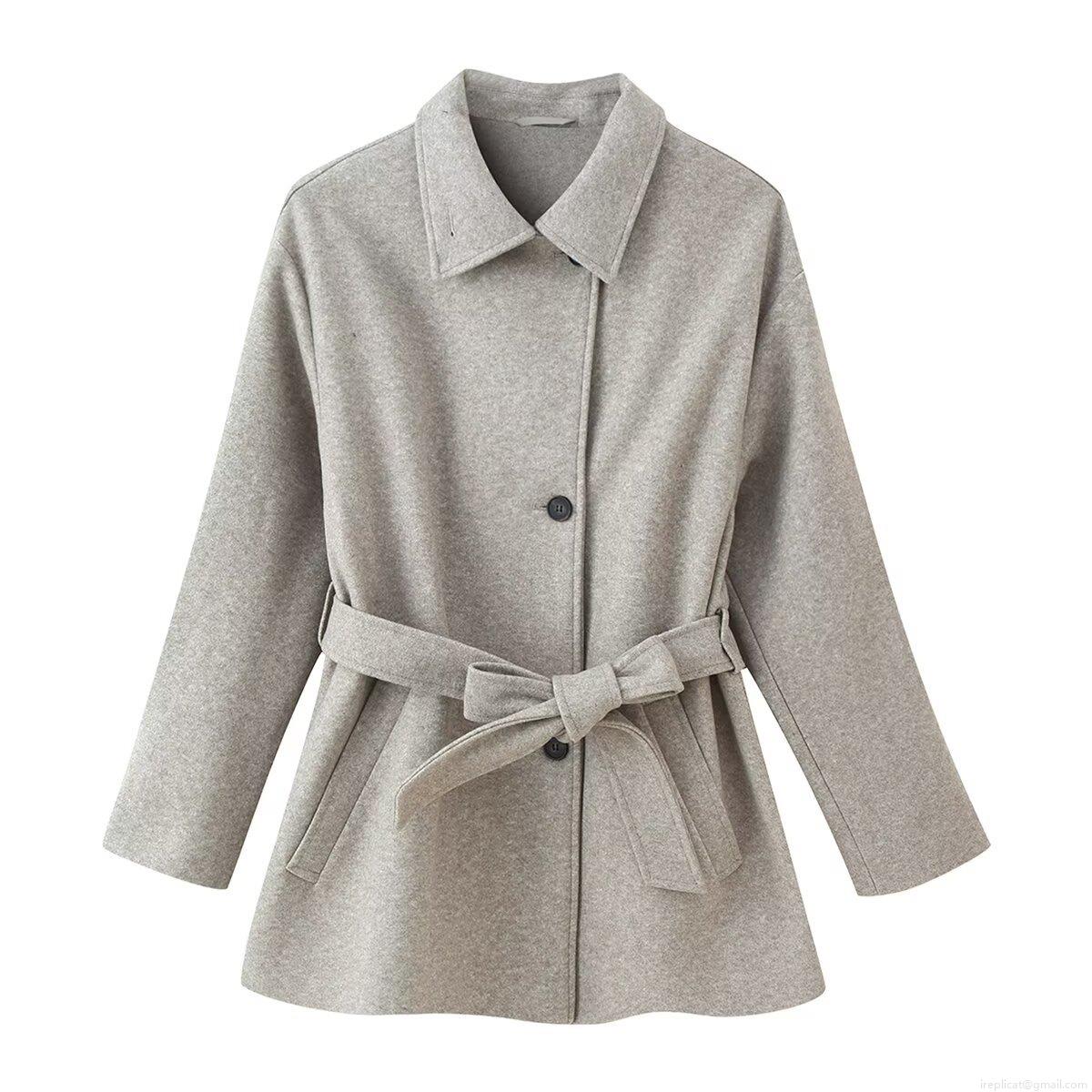 • Women's Fashion Woolen Texture Coat Double Layer Collar Belted Jacket Mid-Length Long Sleeve Solid Color Outerwear For Fall Winter Elegant Lady