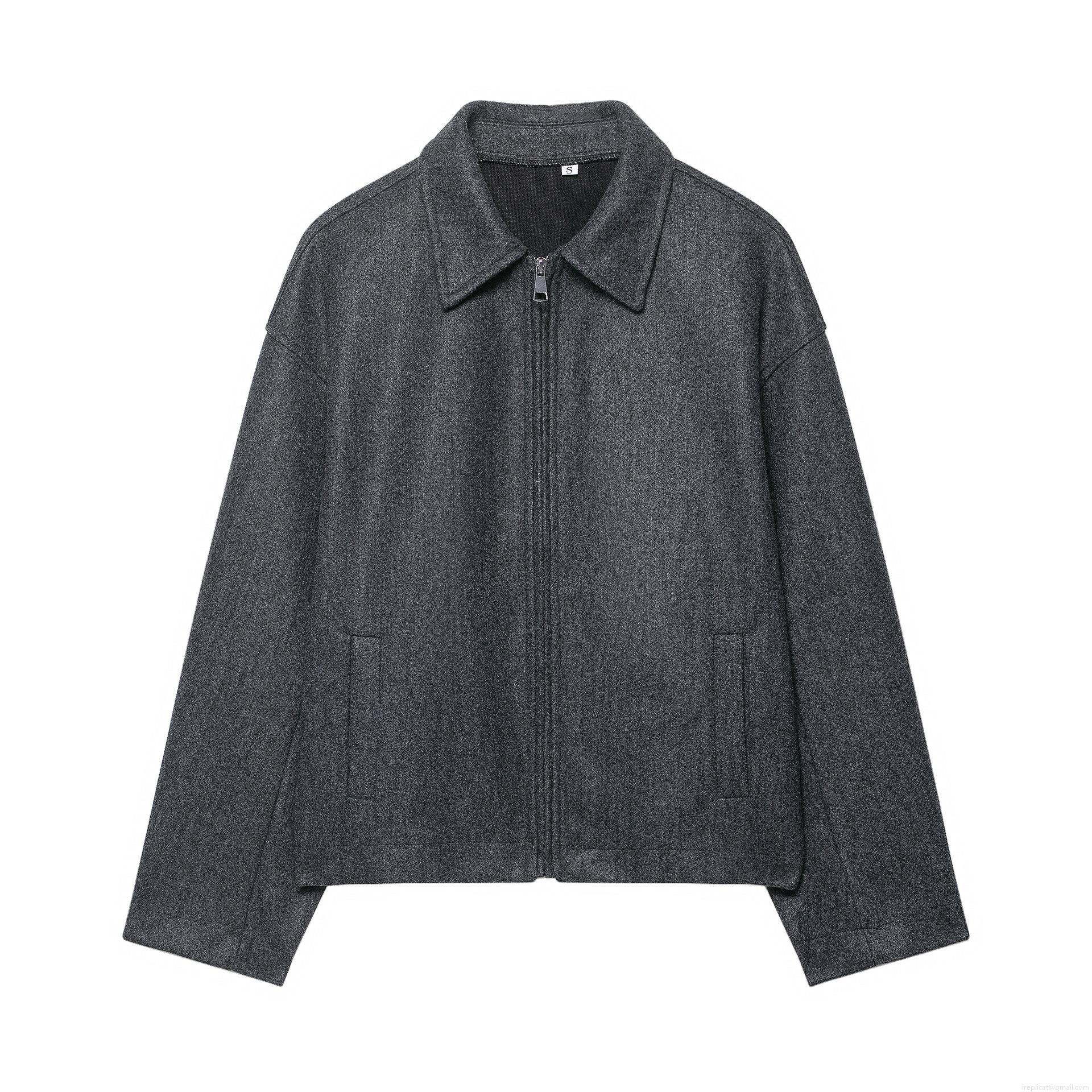 Women's Fashion Woolen Texture Lapel Jacket Loose Zip Up Long Sleeve Casual Outerwear Streetwear Coat For Women Spring Fall