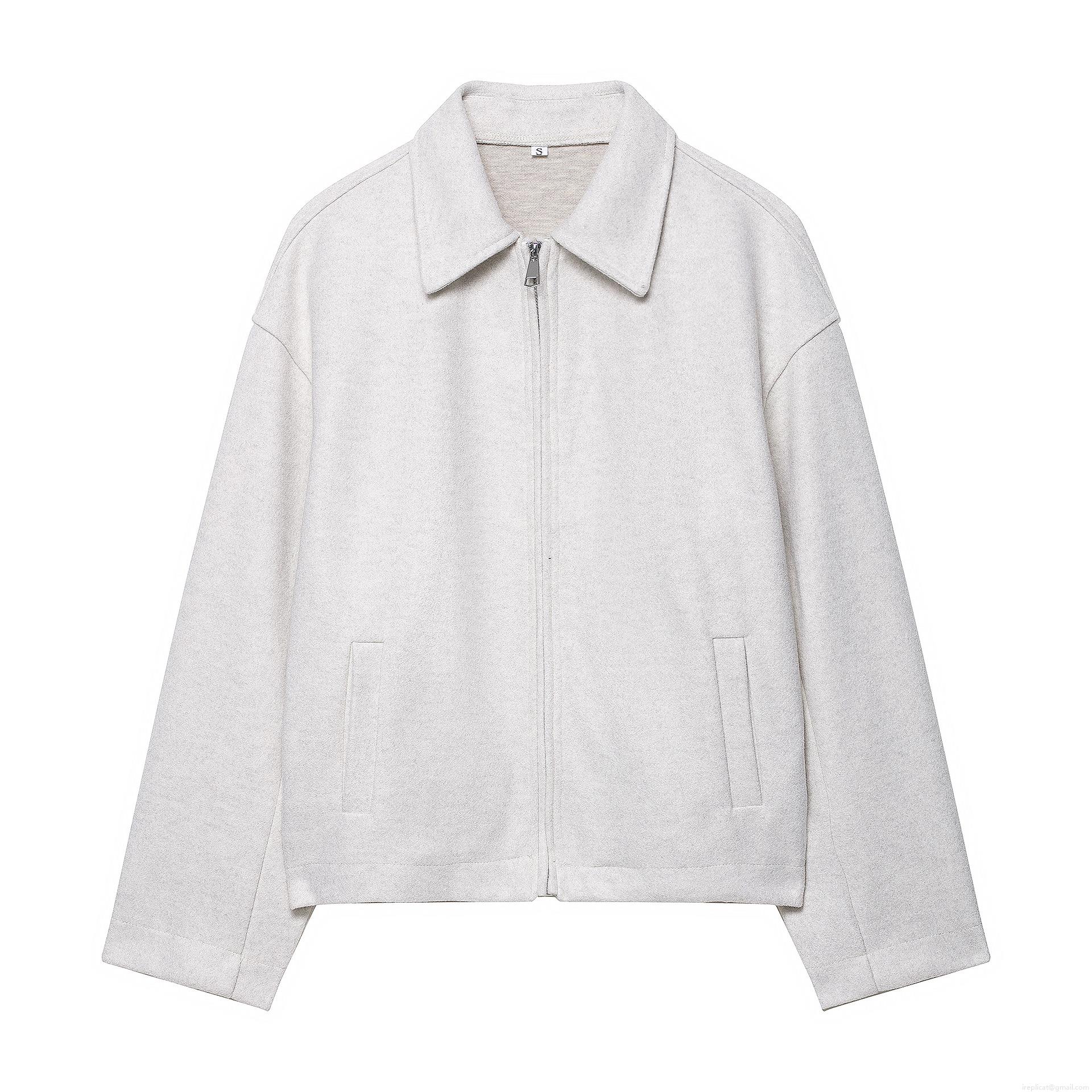 • Women's Fashion Woolen Texture Lapel Jacket Loose Zip Up Long Sleeve Casual Outerwear Streetwear Coat For Women Spring Fall