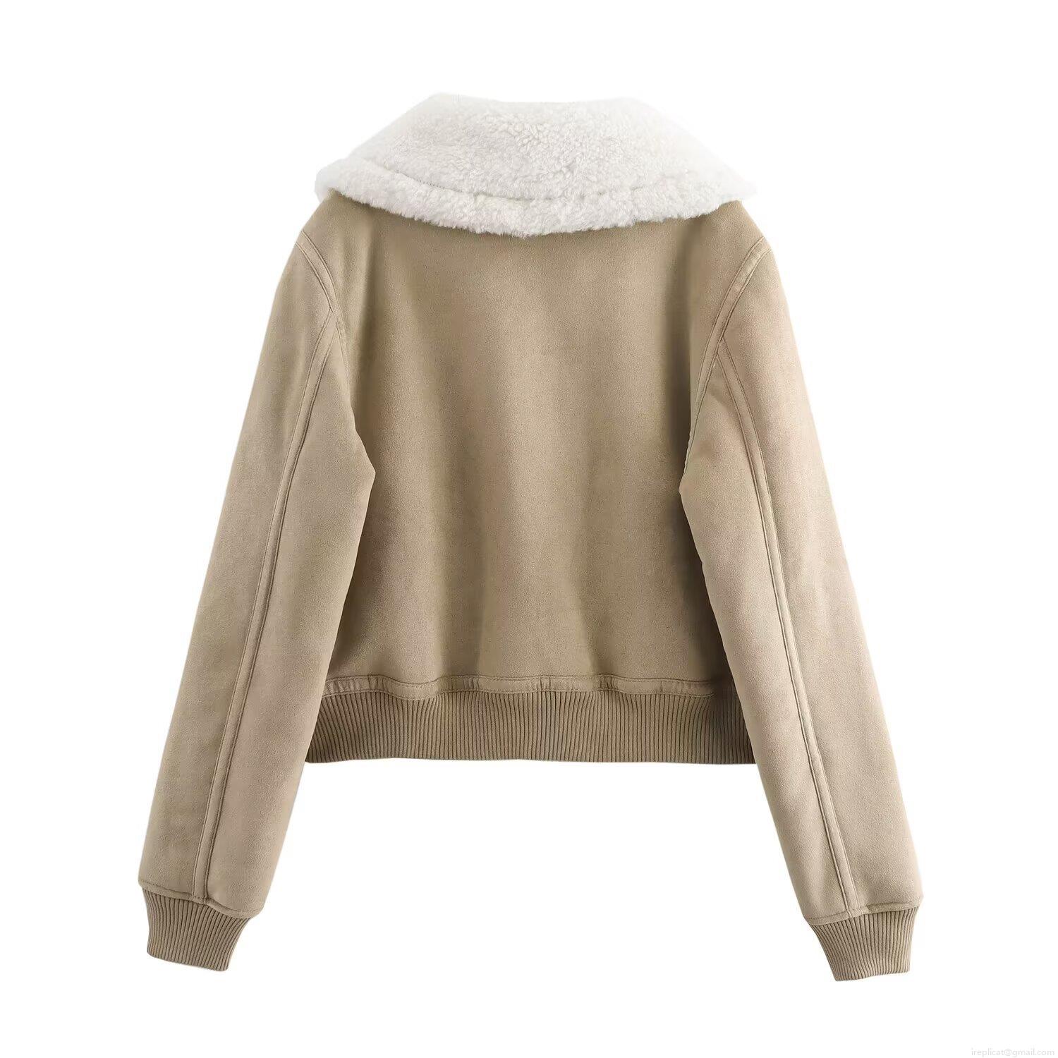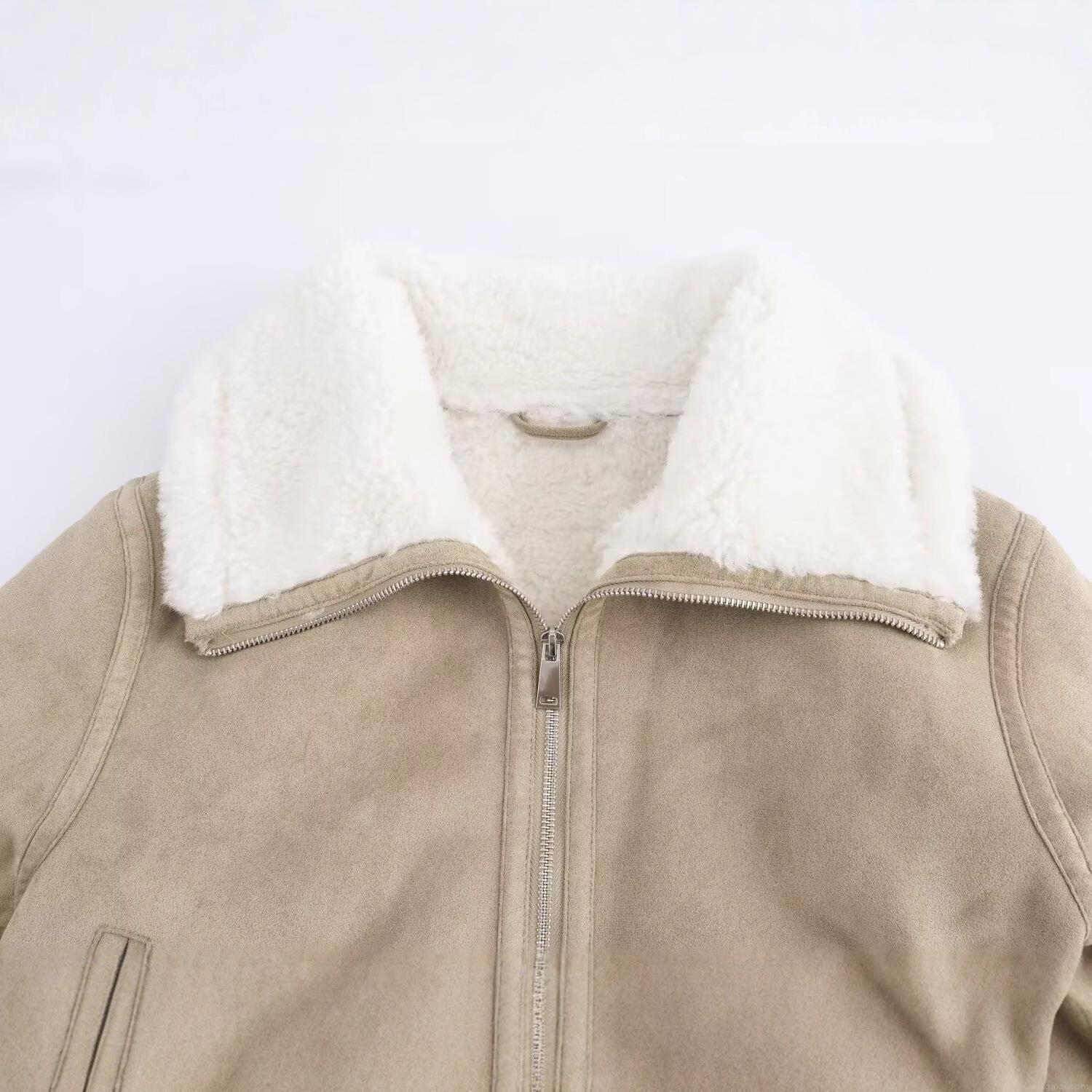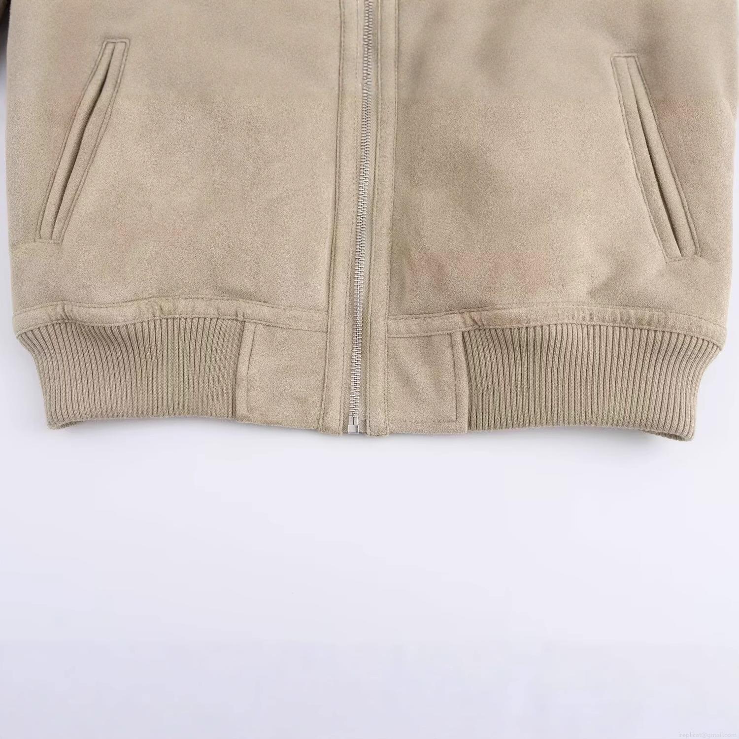 • Women's Fashionable Faux Suede Bomber Jacket With Faux Sherpa Collar Warm Zip Up Casual Streetwear Outerwear Coat For Women