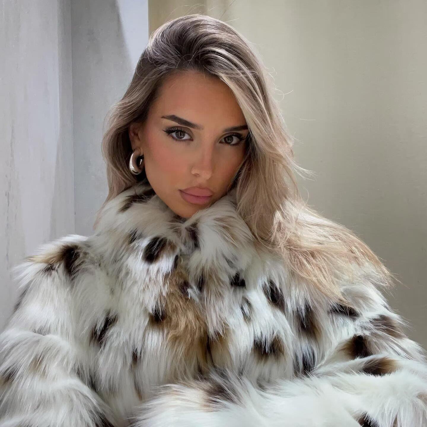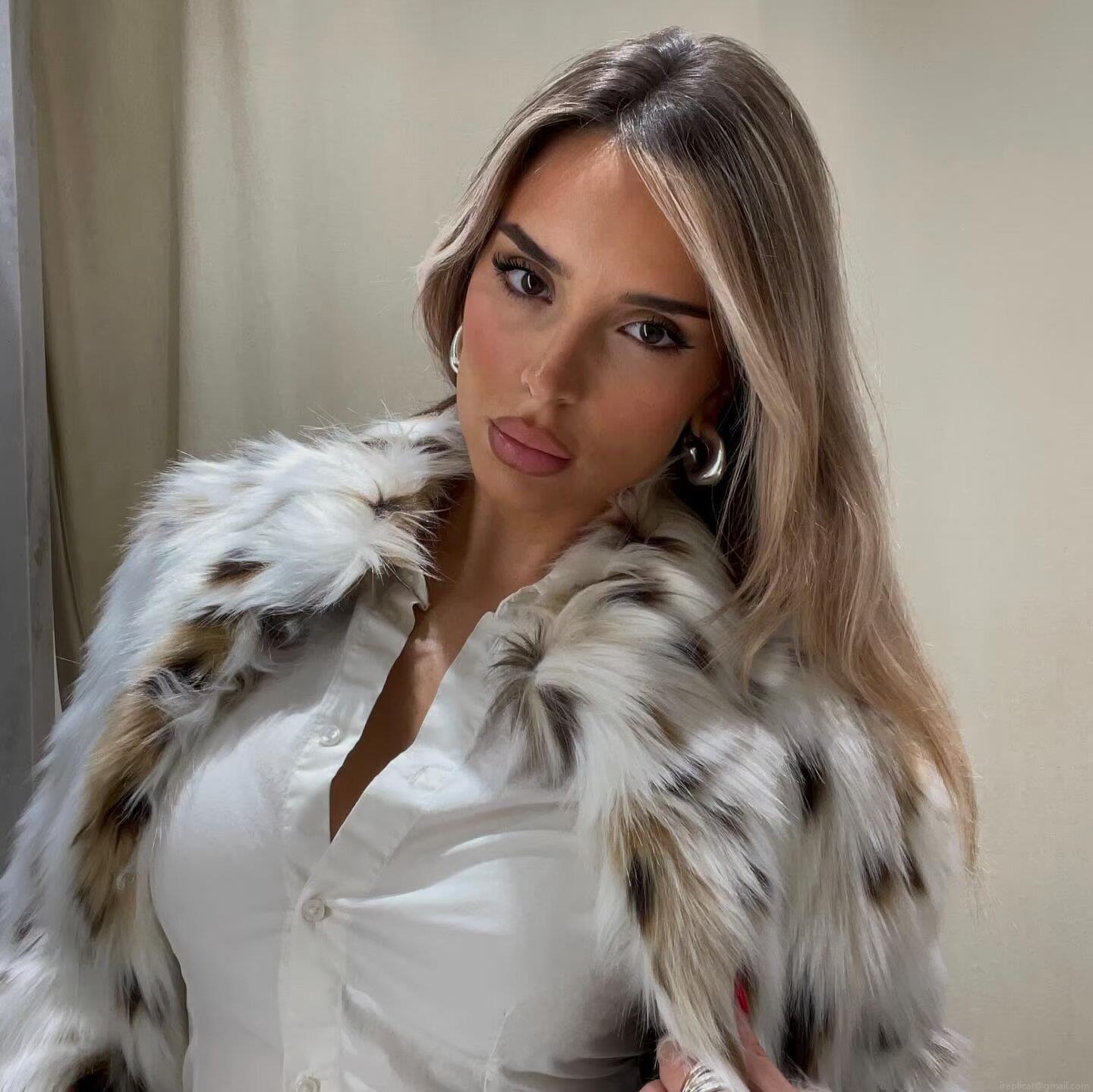 • Women's Faux Fur Coat Fashion Animal Print Leopard Spotted Winter Jacket With High Neck Warm Long Sleeve Zipper Streetwear Outerwear For Ladies