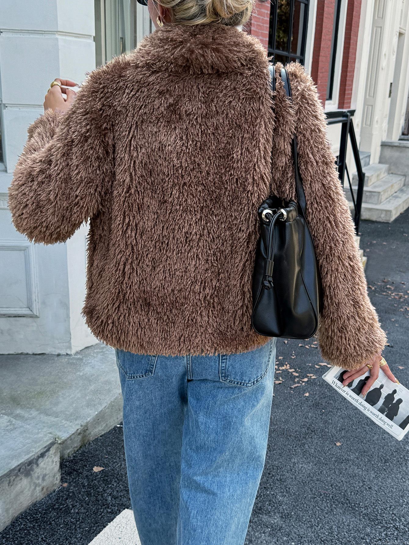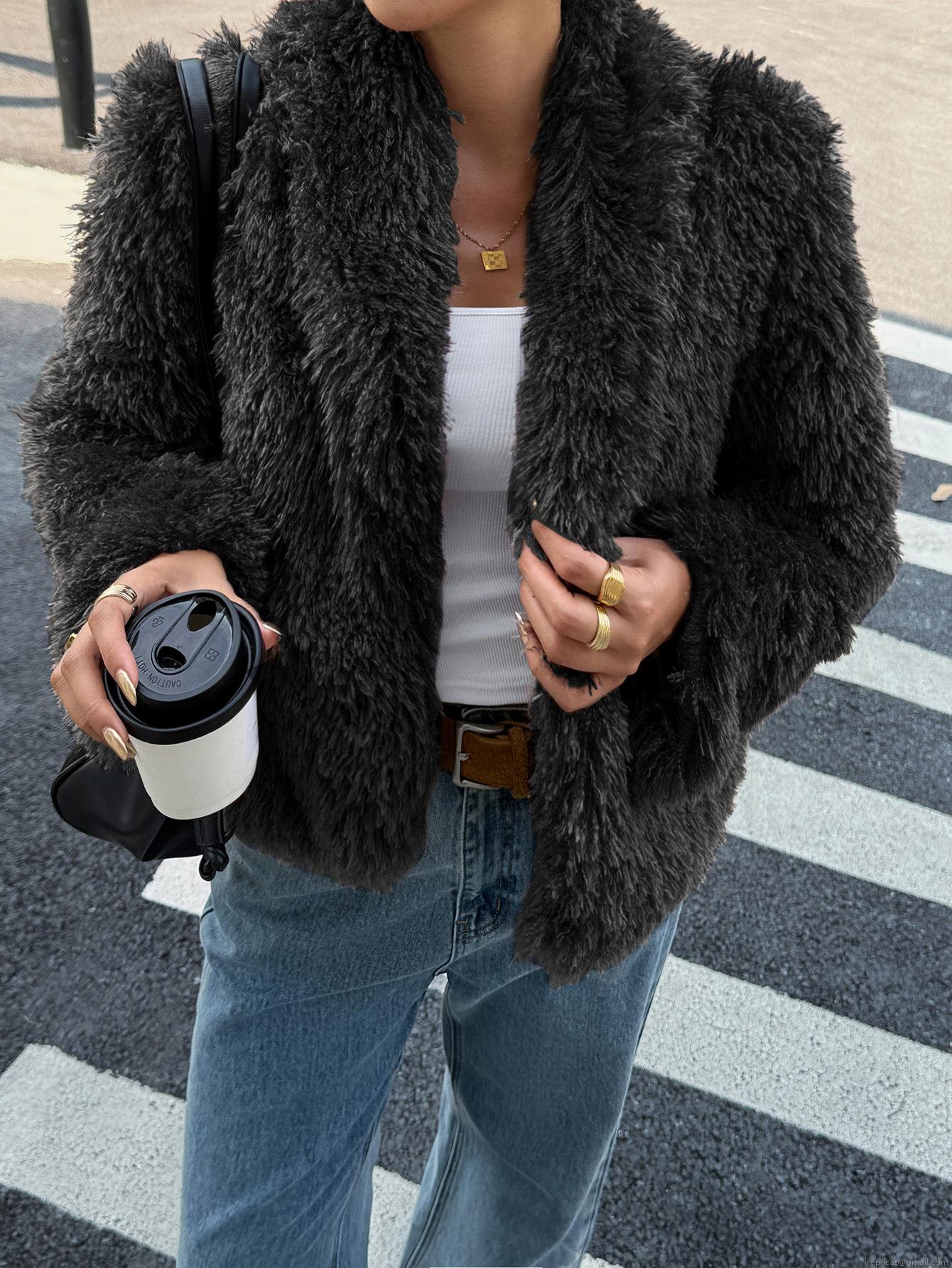 • Women's Faux Fur Coat Shaggy Long Sleeve Jacket Open Front Plush Outerwear For Autumn Winter Casual Streetwear Ladies Warm Lapel Overcoat Solid Color