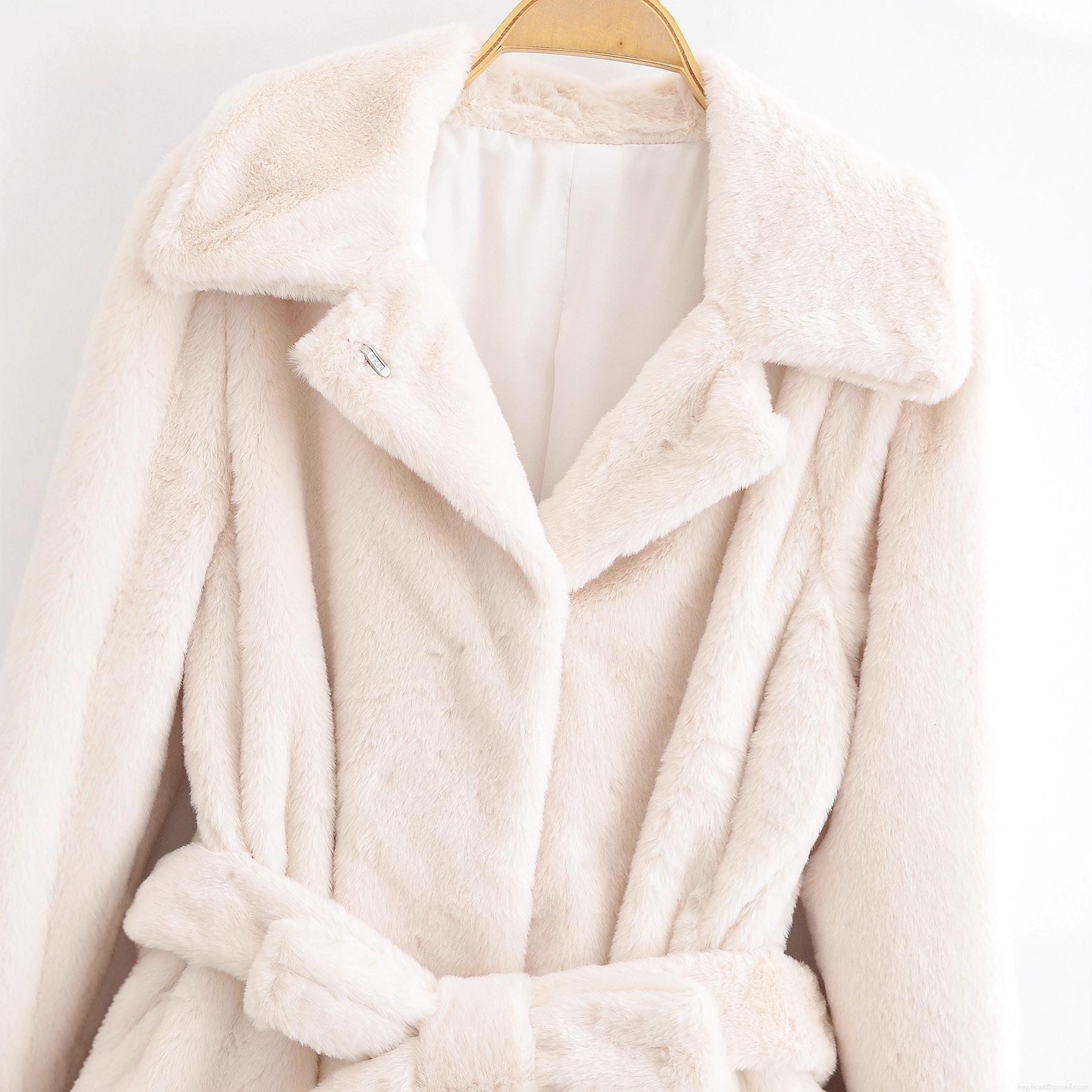 • Women's Faux Fur Coat With Belt Elegant Lapel Long Sleeve Solid Color Winter Jacket Casual Outerwear Fashion Warm Cream Beige Short Furry Overcoat