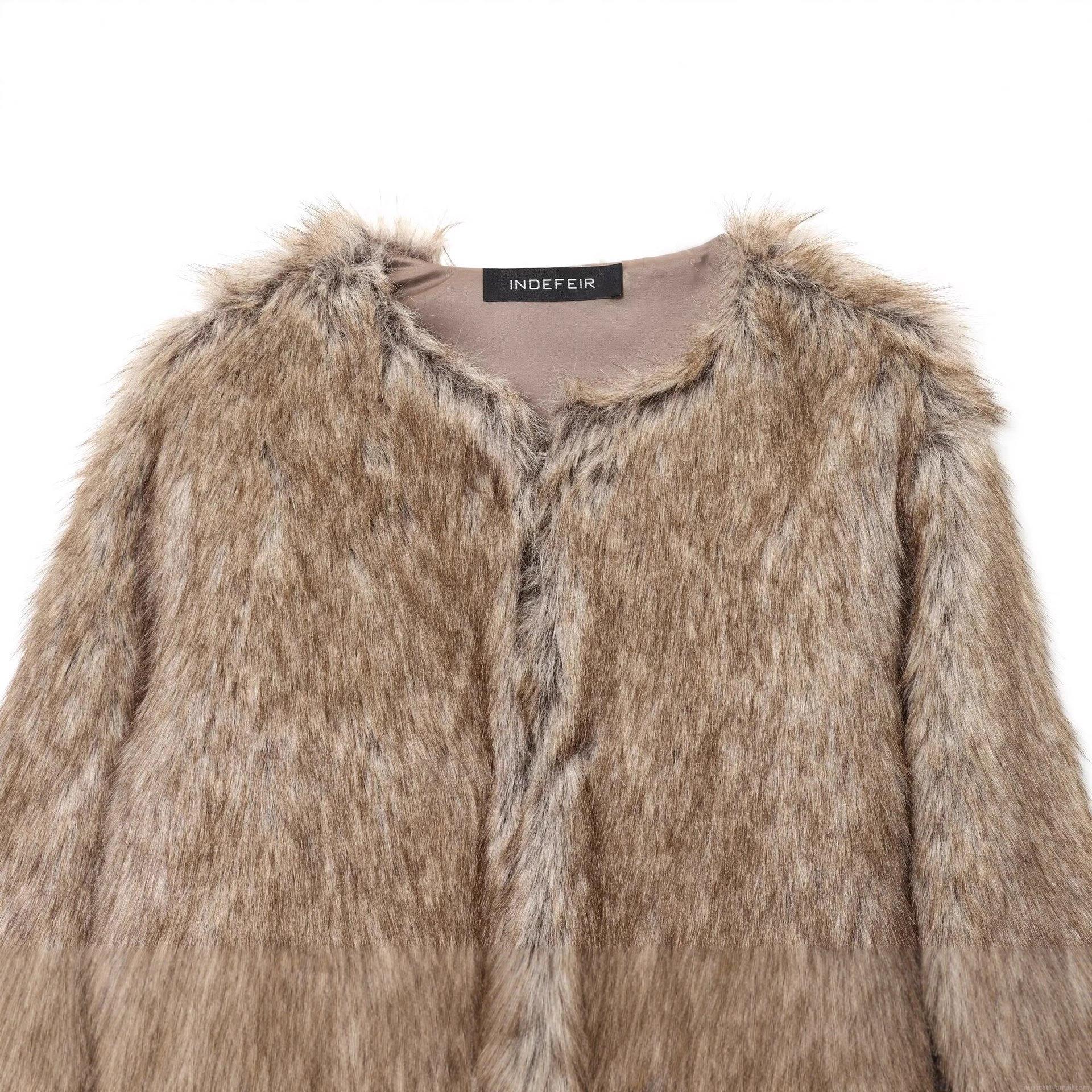 • Women's Faux Fur Jacket Autumn Winter Round Neck Long Sleeve Solid Color Warm Streetwear Casual Outwear Short Coat For Women