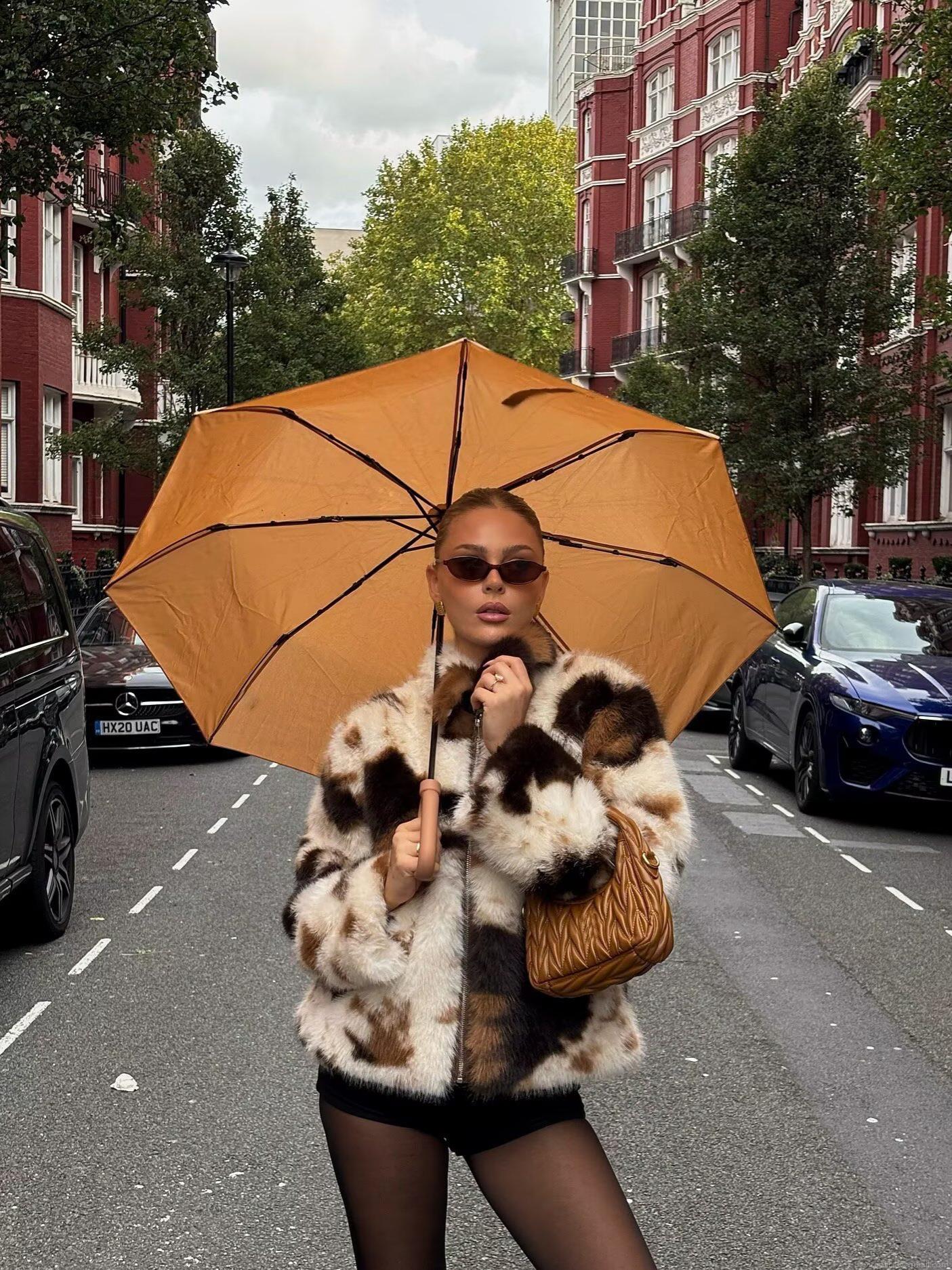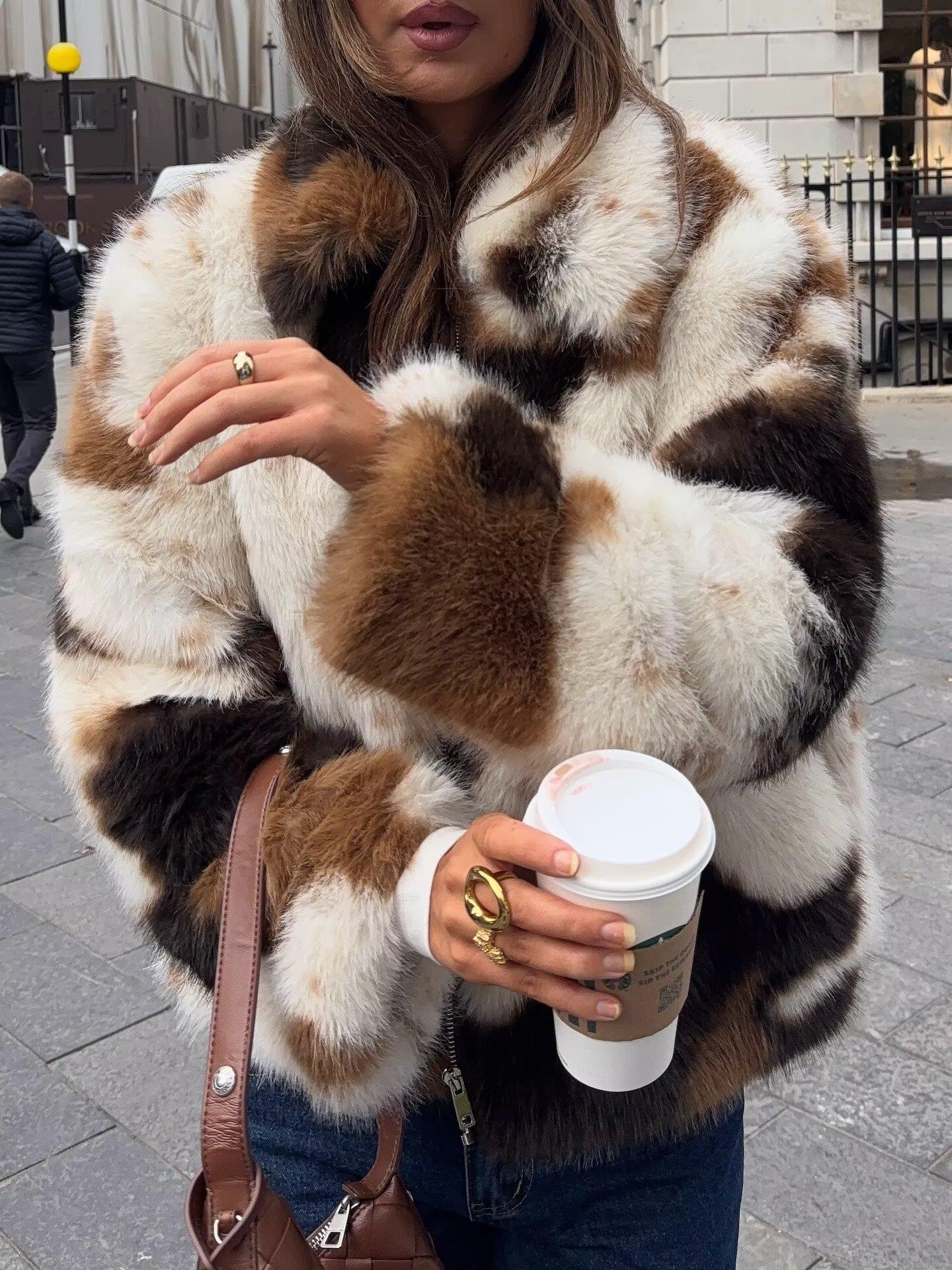• Women's Faux Fur Jacket Cow Print Animal Pattern Short Coat Winter Warm Long Sleeve Streetwear Outwear With Zipper Lapel Collar Fashion Casual Ladies Chic Top