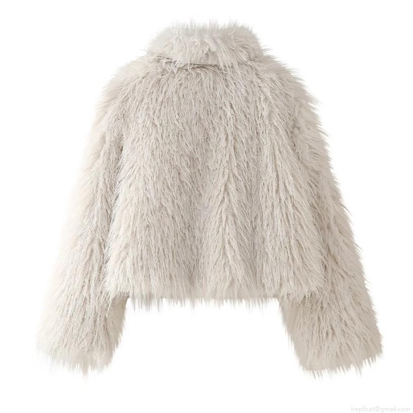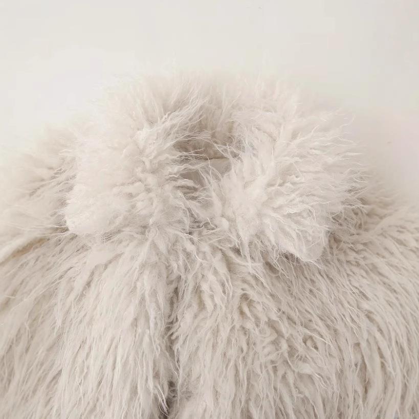 • Women's Faux Fur Jacket Creamy White Winter Warm Long Sleeve Loose Fit Casual Outerwear Short Coat Elegant Soft Plush Streetwear Fashionable Lady