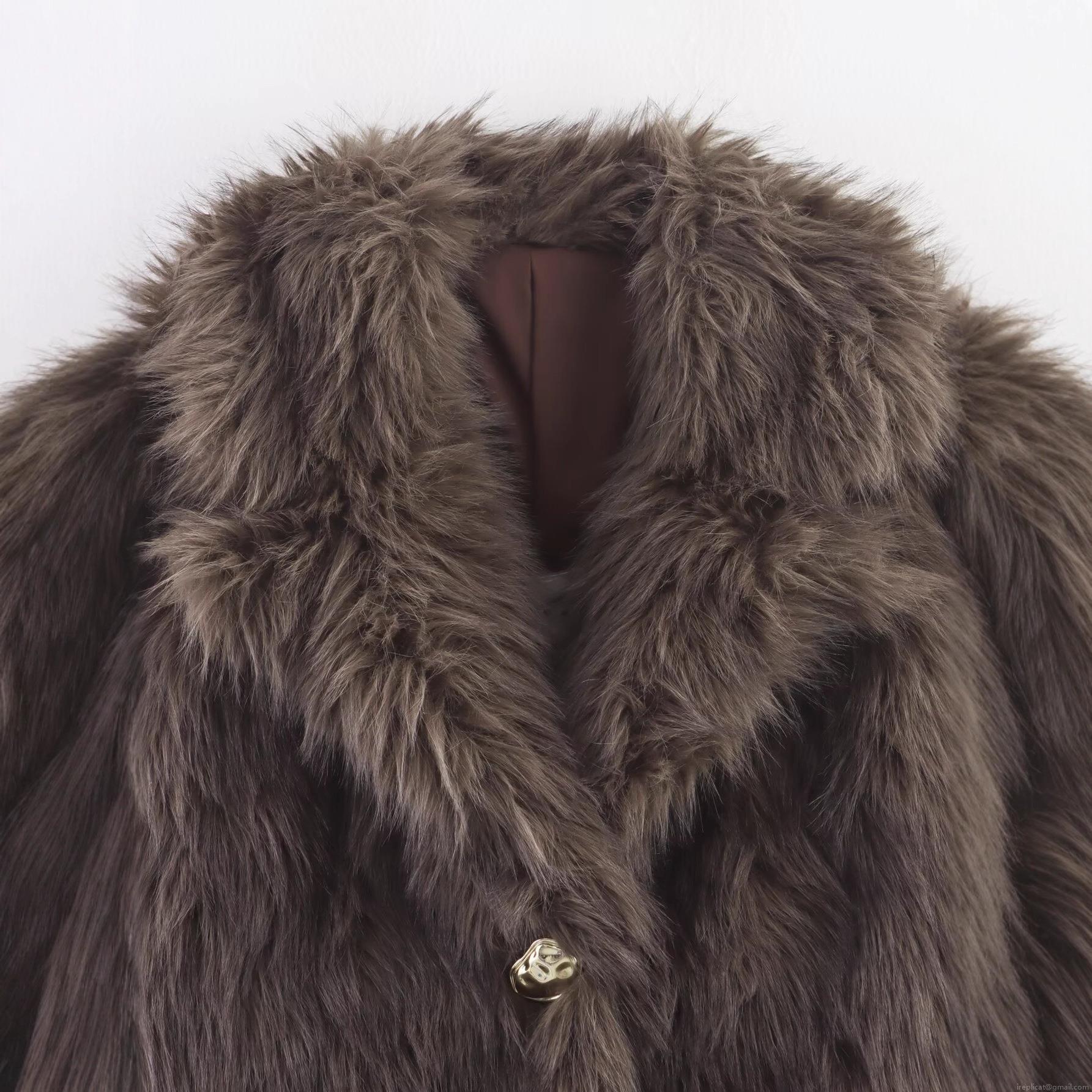 • Women's Faux Fur Jacket Lapel Collar Decorative Button Solid Color Warm Outerwear Winter Casual Streetwear Faux Fur Coat For Women