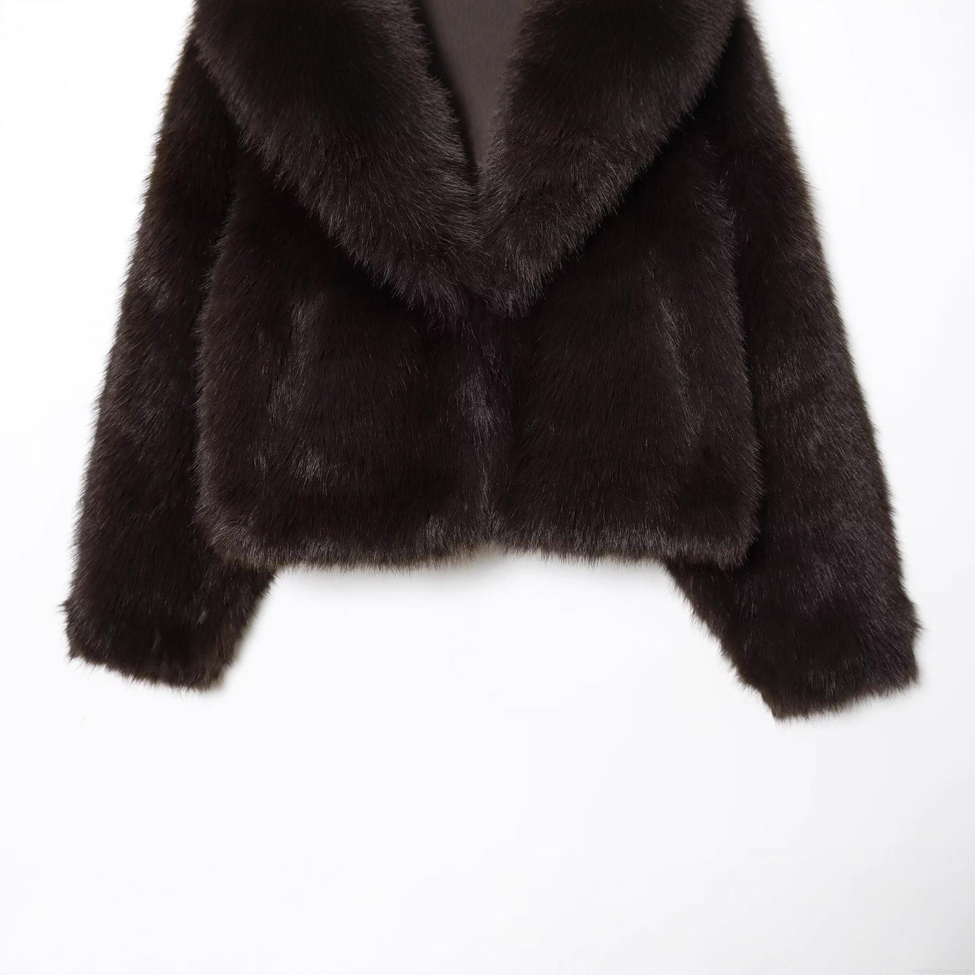 • Women's Faux Fur Jacket Lapel Long Sleeve Solid Color Winter Warm Crop Bomber Coat Fashion Streetwear Outerwear For Women