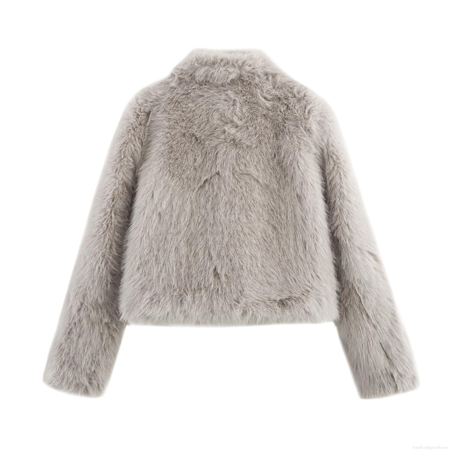 • Women's Faux Fur Jacket Luxury Short Coat Winter Lapel Thick Warm Loose Outerwear Long Sleeve Streetwear Trendy Jacket for Women