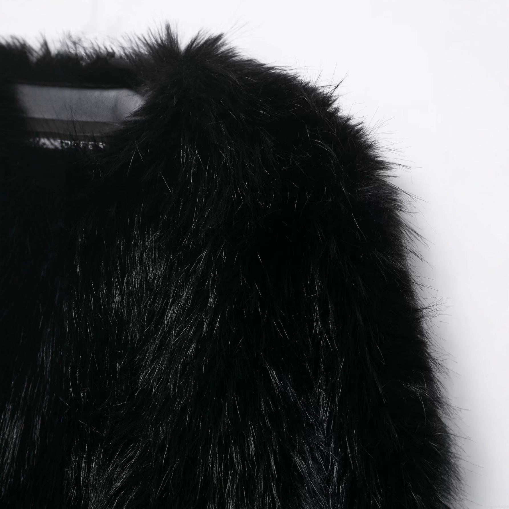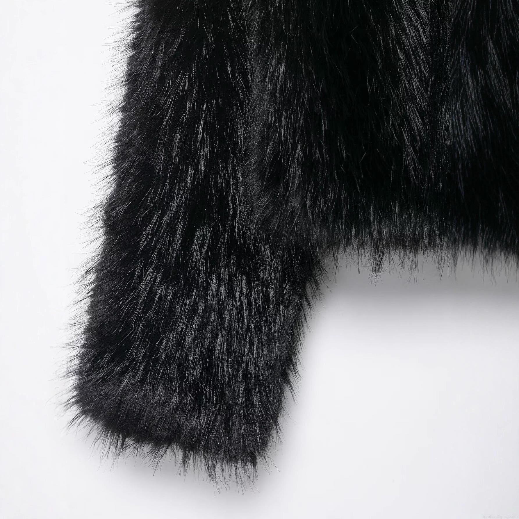 • Women's Faux Fur Jacket Round Neck Long Sleeve Short Outerwear Solid Black Warm Shaggy Coat For Streetwear Party Winter Autumn Lady
