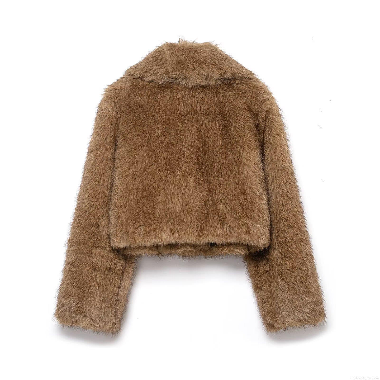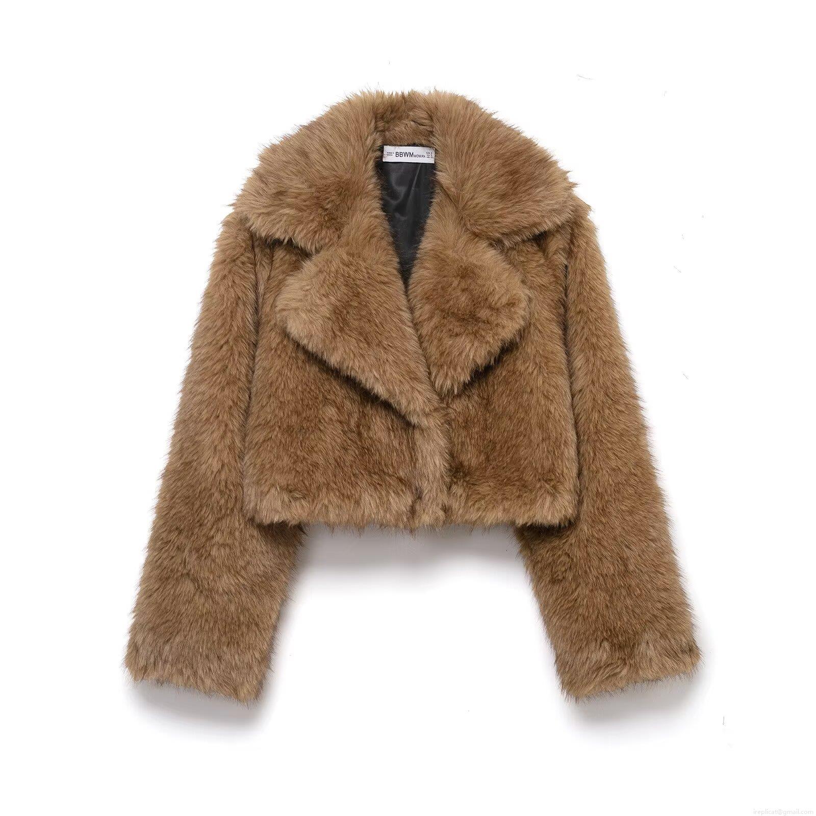 Women's Faux Fur Jacket Warm Autumn Winter Short Coat Turn-down Collar 100% Polyester Chic Streetwear Casual Party Lady Outerwear High Quality