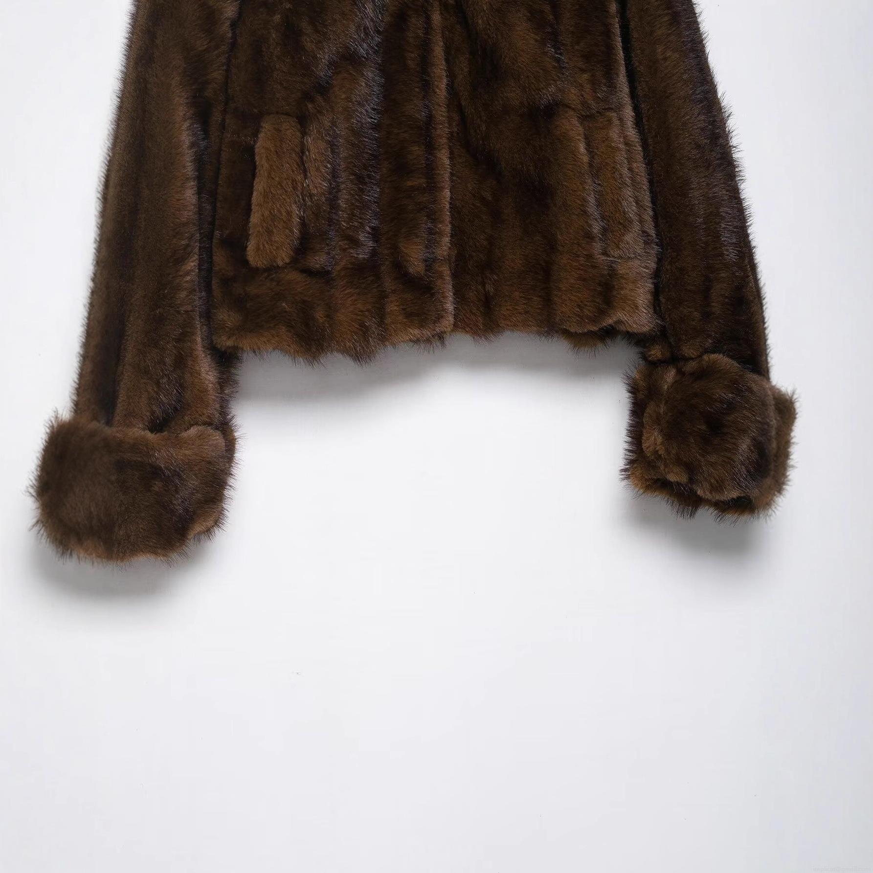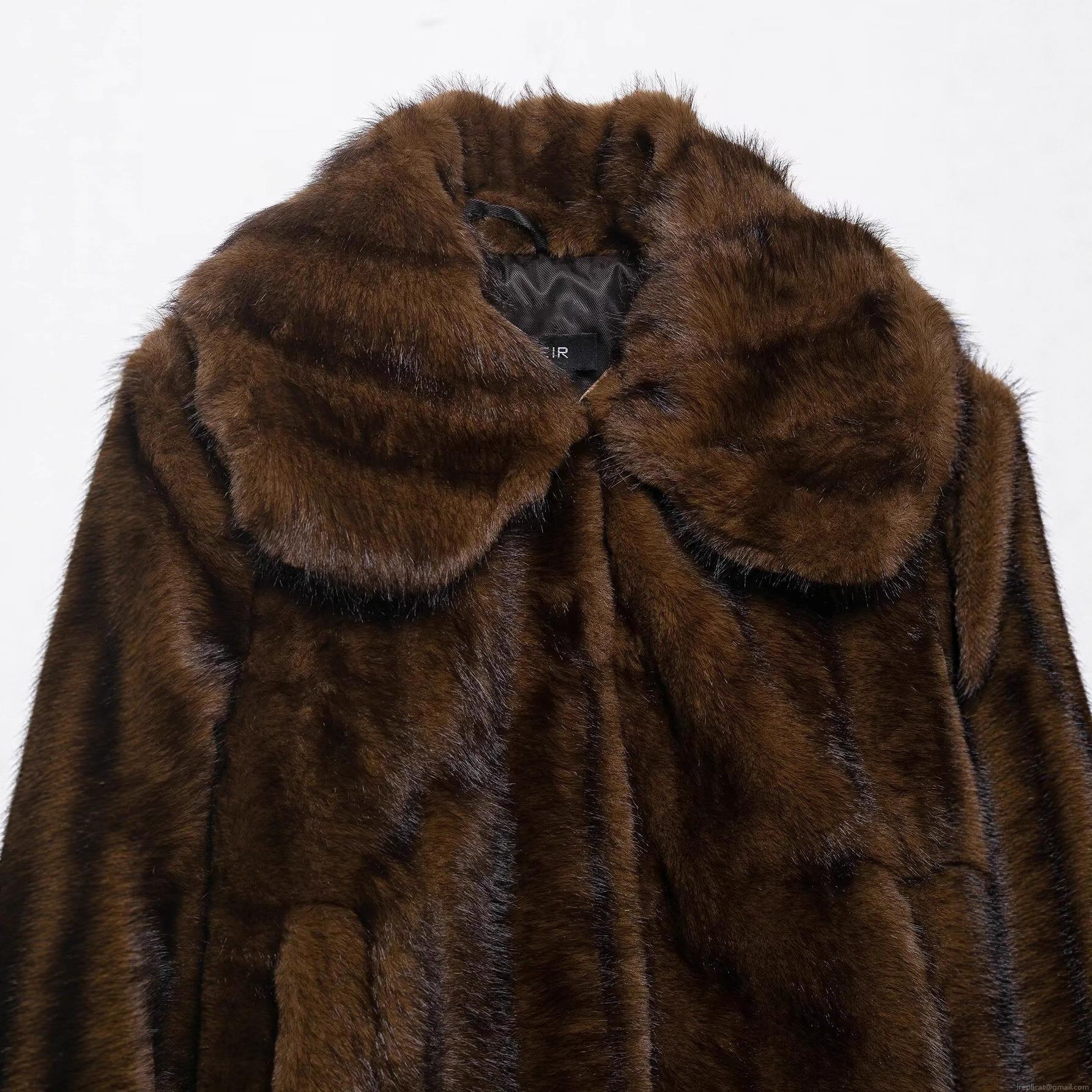 Women's Faux Fur Jacket Winter Warm Lapel Single Breasted Short Coat Streetwear Solid Color Brown Polyester Outerwear For Ladies Fashion