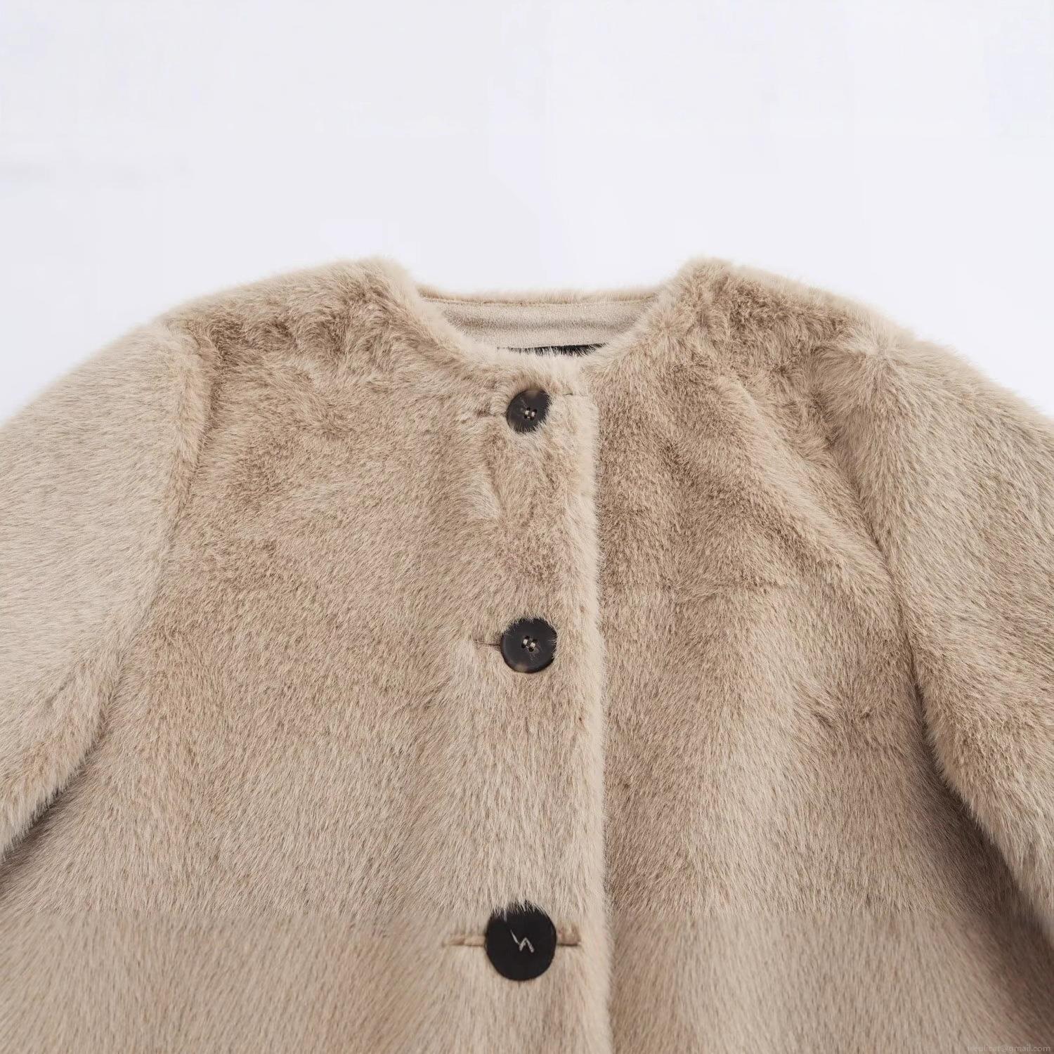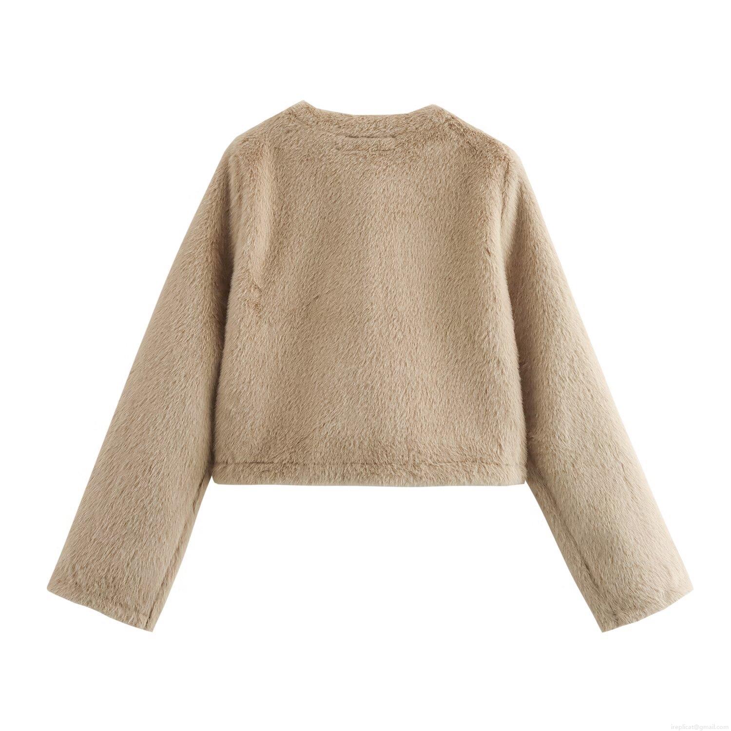 Women's Faux Fur Jacket Winter Warm Short Coat Solid Color Round Neck Single Breasted Outerwear For Lady Casual Streetwear Autumn Outfits