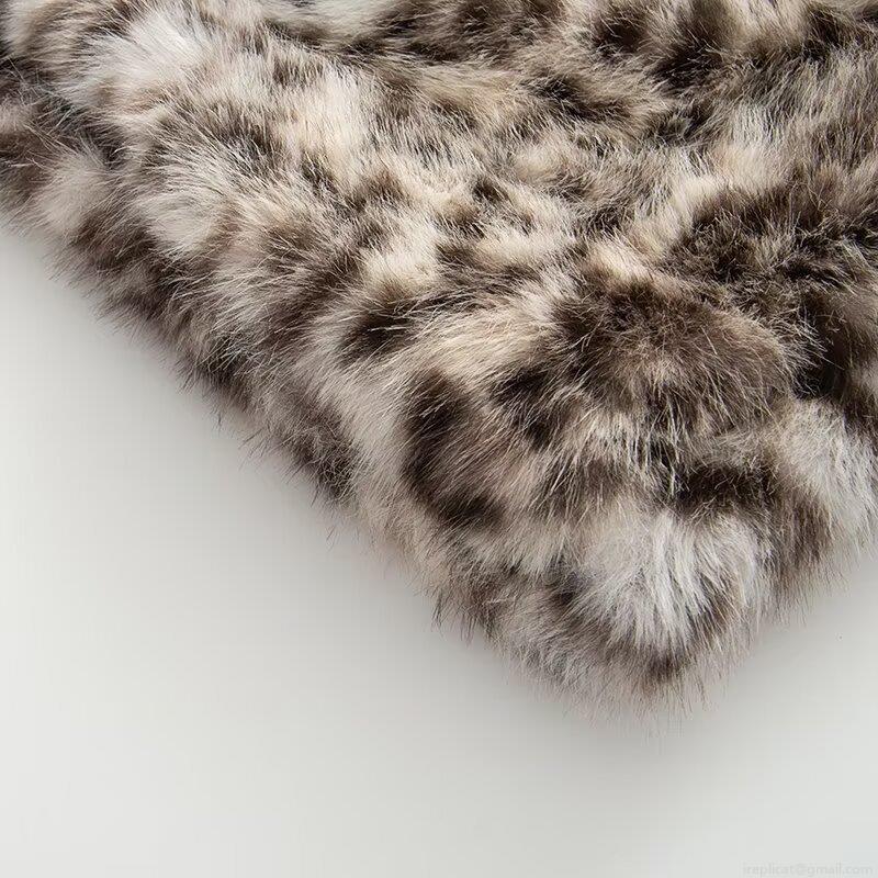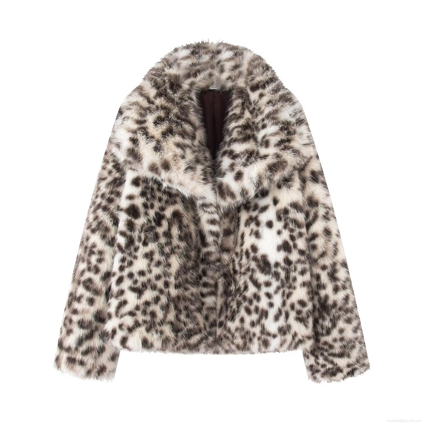 • Women's Faux Fur Leopard Print Jacket Oversized Lapel Shaggy Winter Coat With Pockets Long Sleeve Warm Outerwear