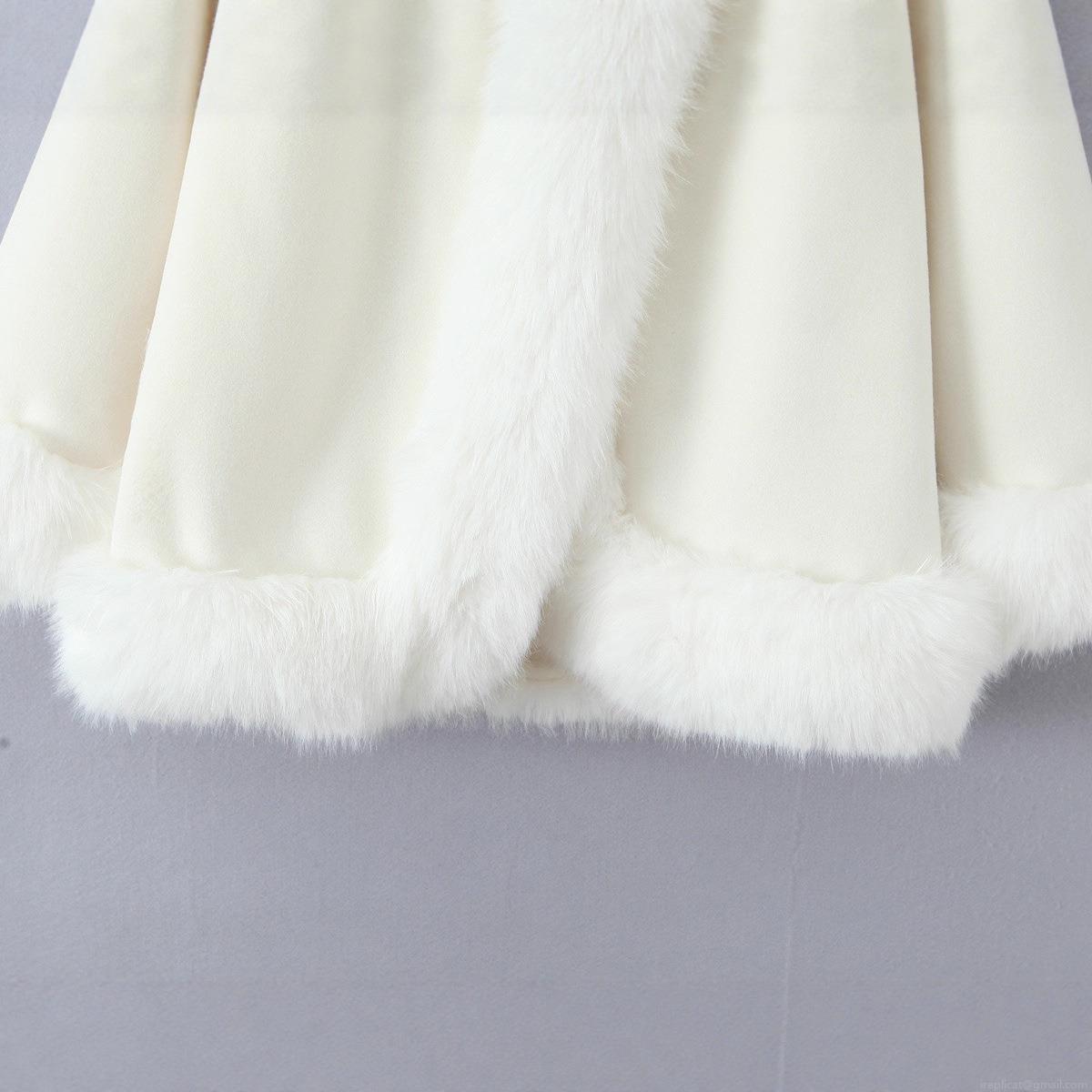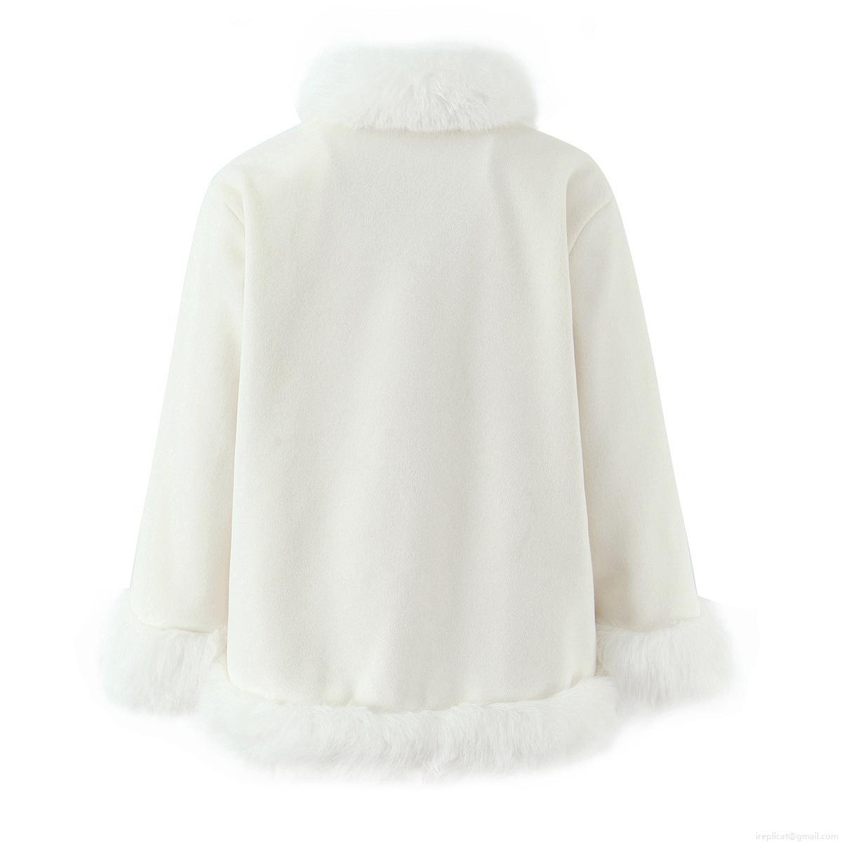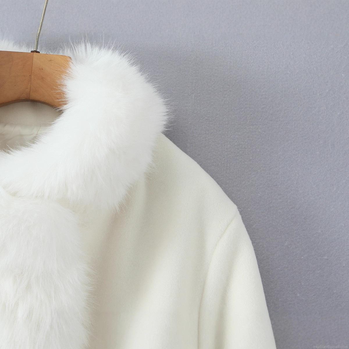 Women's Faux Fur Patchwork Woolen Coat Elegant Western Style Solid Color Long Sleeve Warm Single Breasted Jacket Outerwear Autumn Winter Streetwear