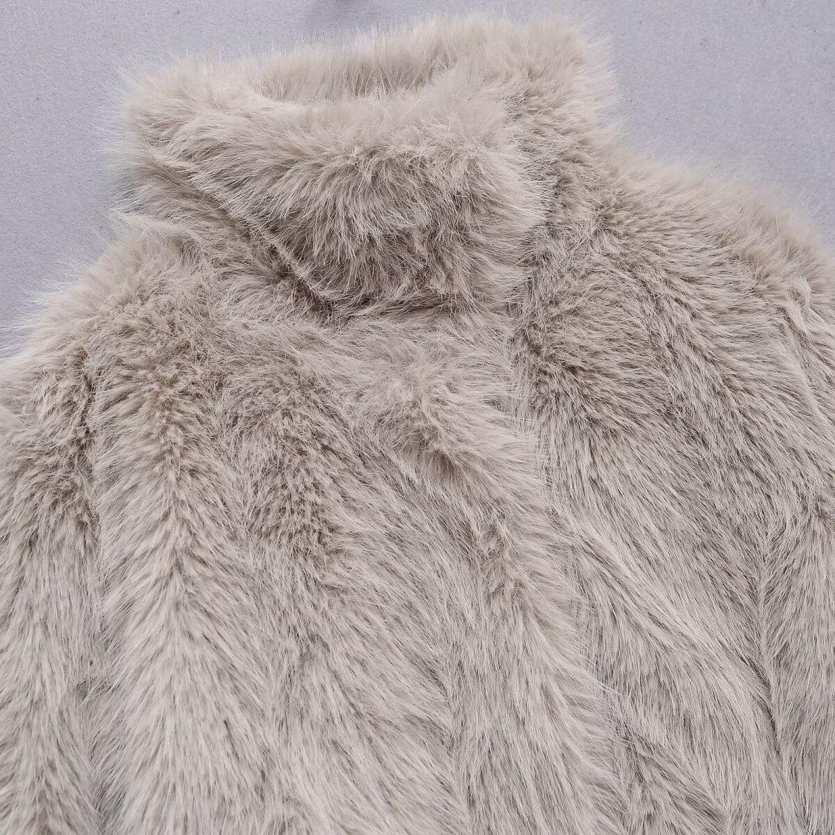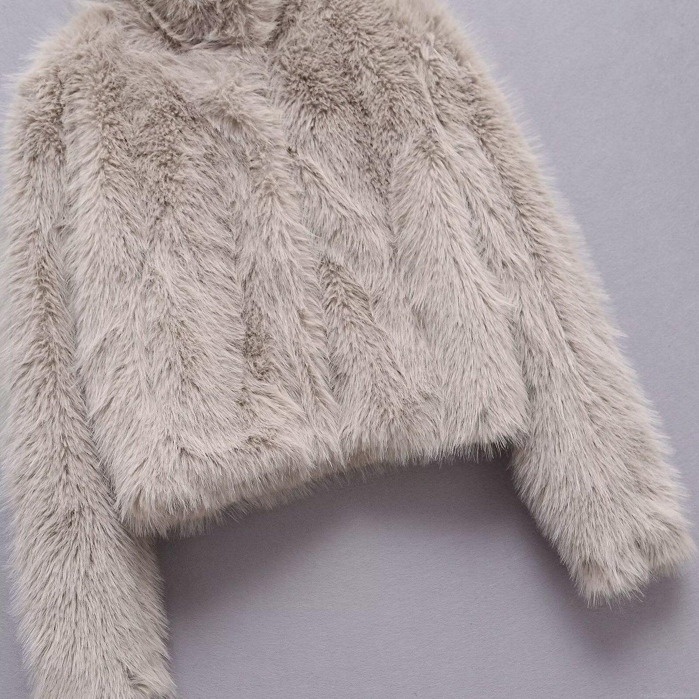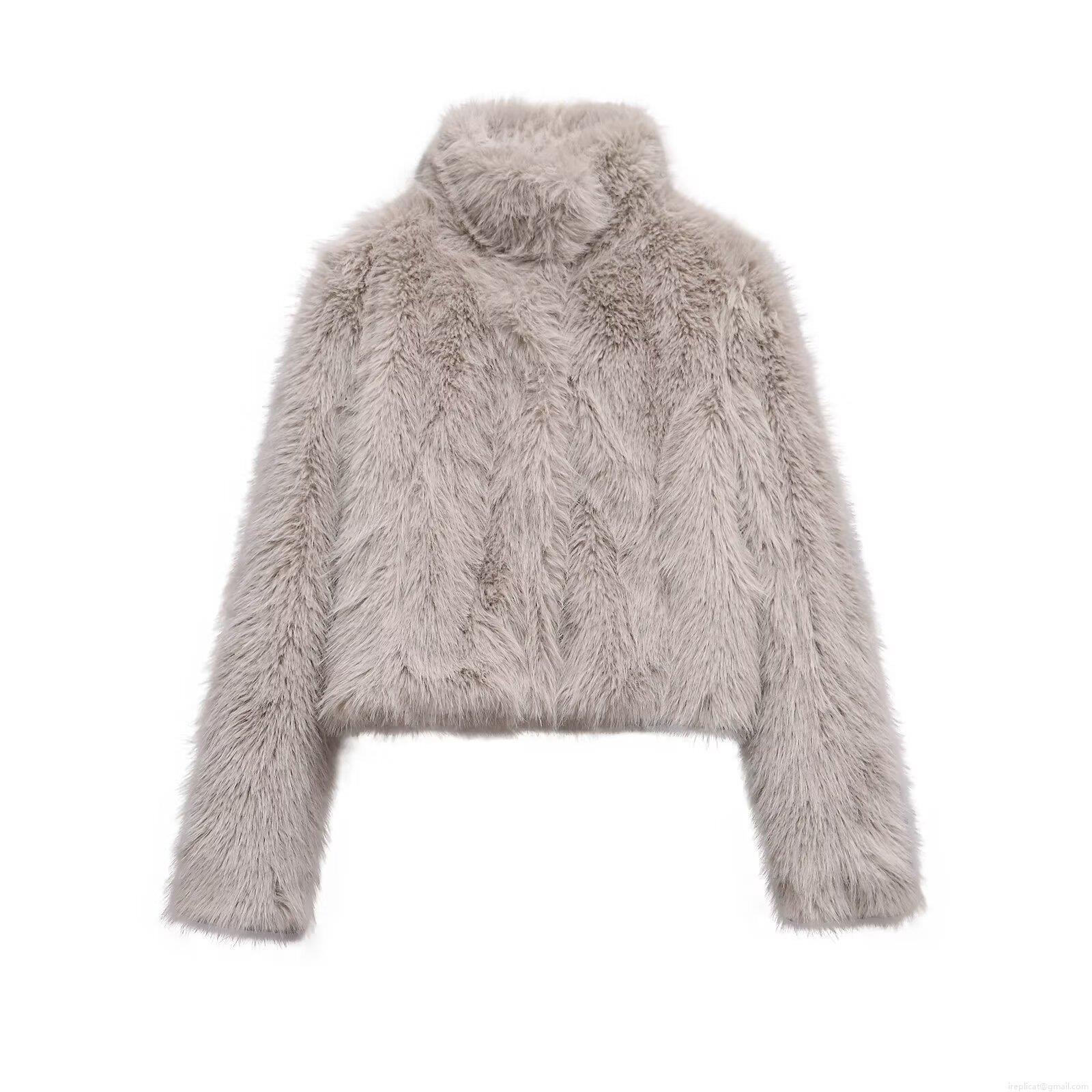• Women's Faux Fur Short Jacket Fashion Casual Stand Collar Fluffy Outerwear Warm Long Sleeve Shaggy Coat With Pockets For Autumn Winter Ladies