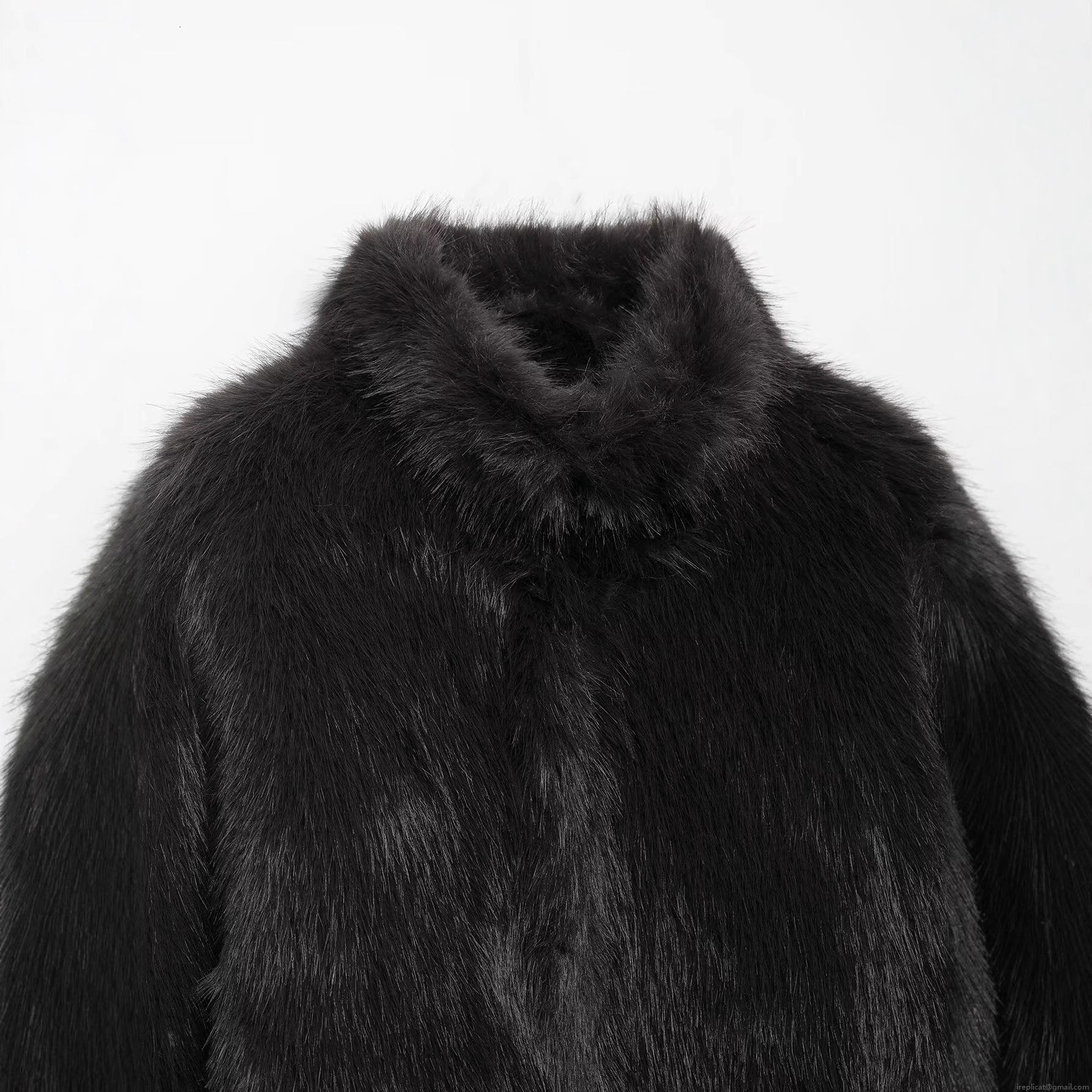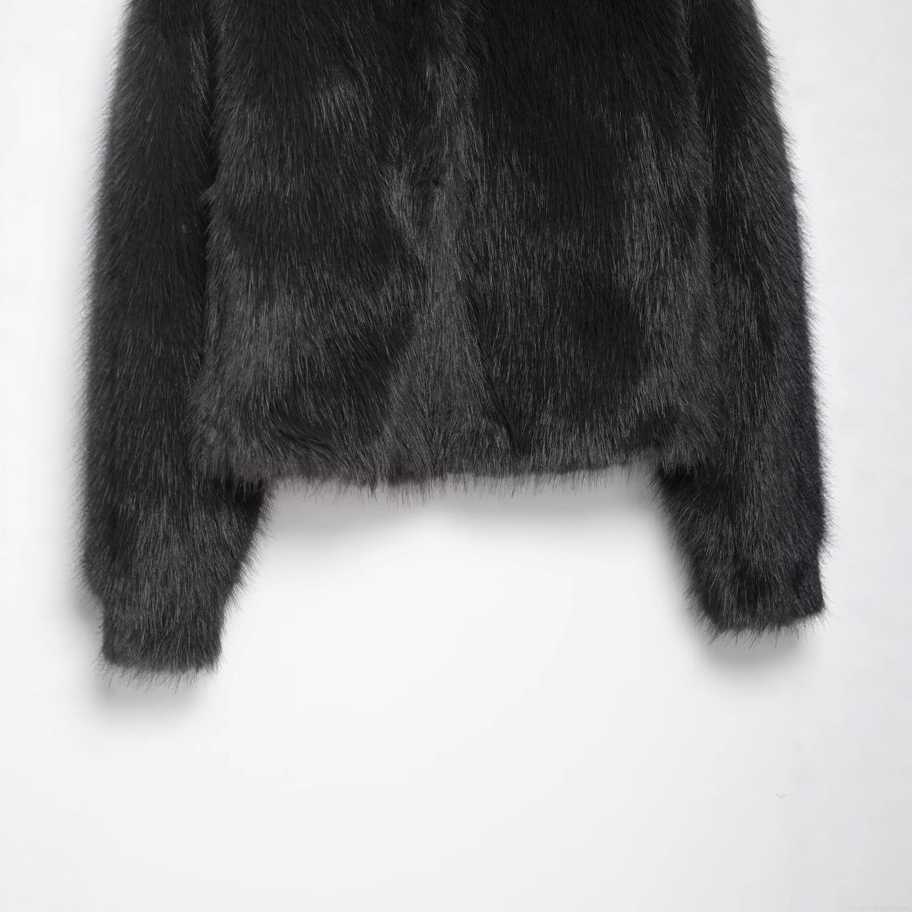 • Women's Faux Fur Short Jacket Stand Collar Long Sleeve Full Zip Solid Color Winter Warm Coat For Ladies Elegant Socialite Style Outerwear Polyester Furry Overcoat