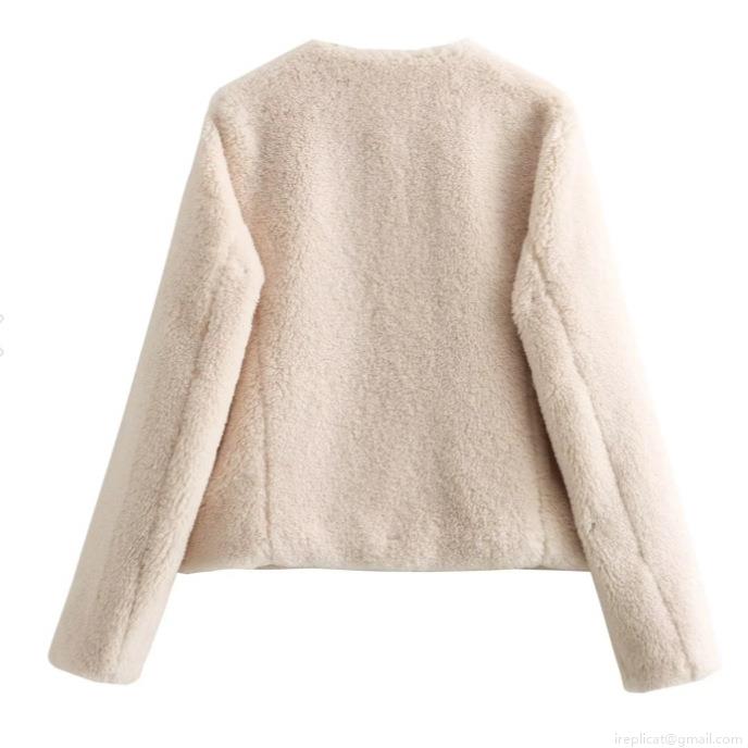 • Women's Faux Fur Short Jacket Warm Lamb Wool Like Outerwear With Metal Hook Buckles Solid Color Round Neck Long Sleeve Coat For Autumn Winter Casual Daily Wear Elegant Style