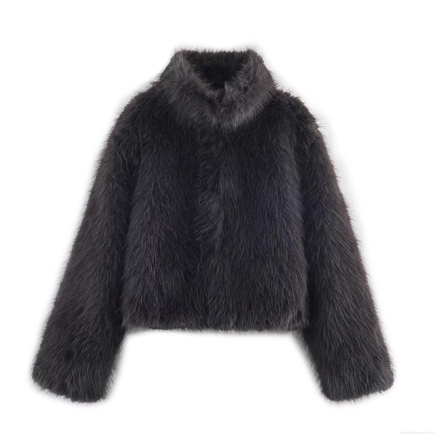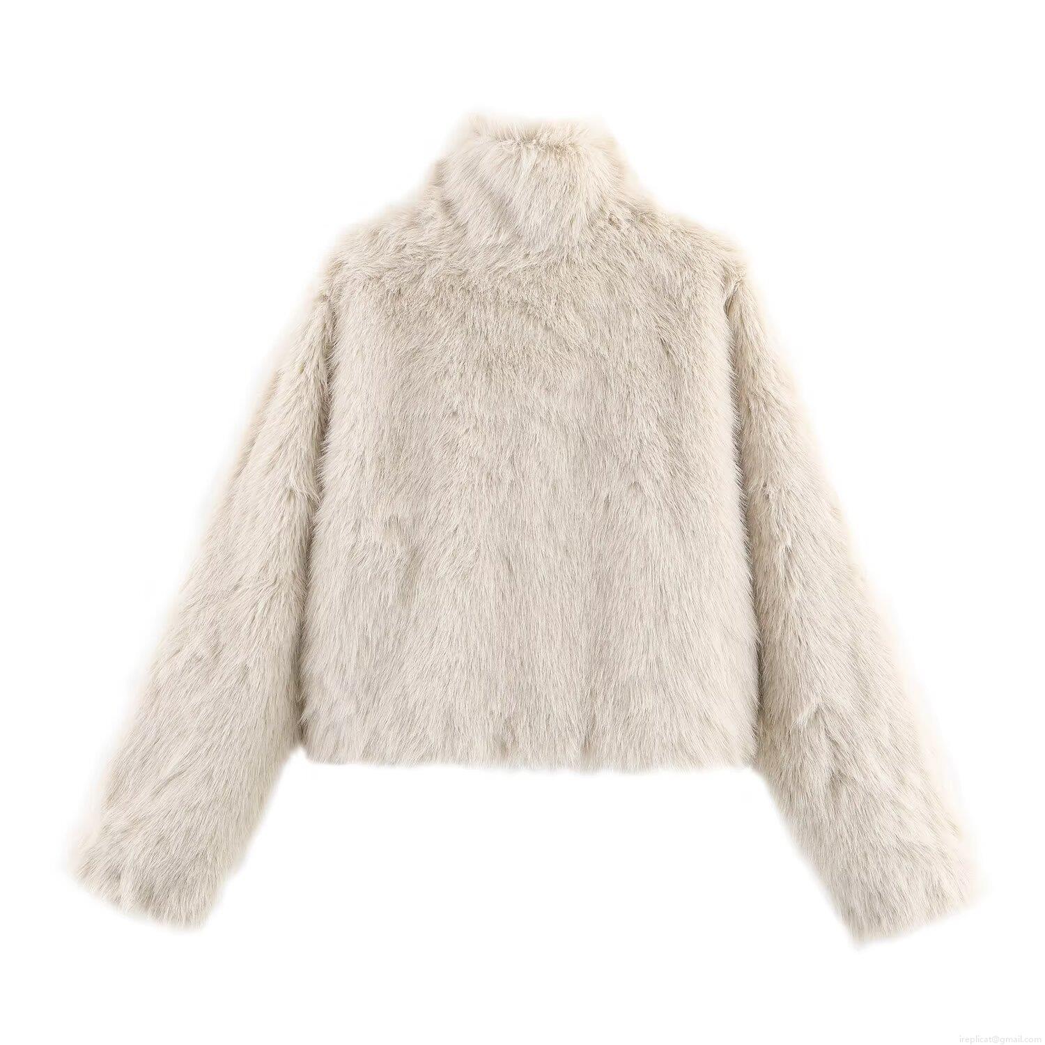 • Women's Faux Fur Stand Collar Jacket Long Sleeve Patchwork Solid Color Warm Coat Street Style Outwear For Autumn Winter