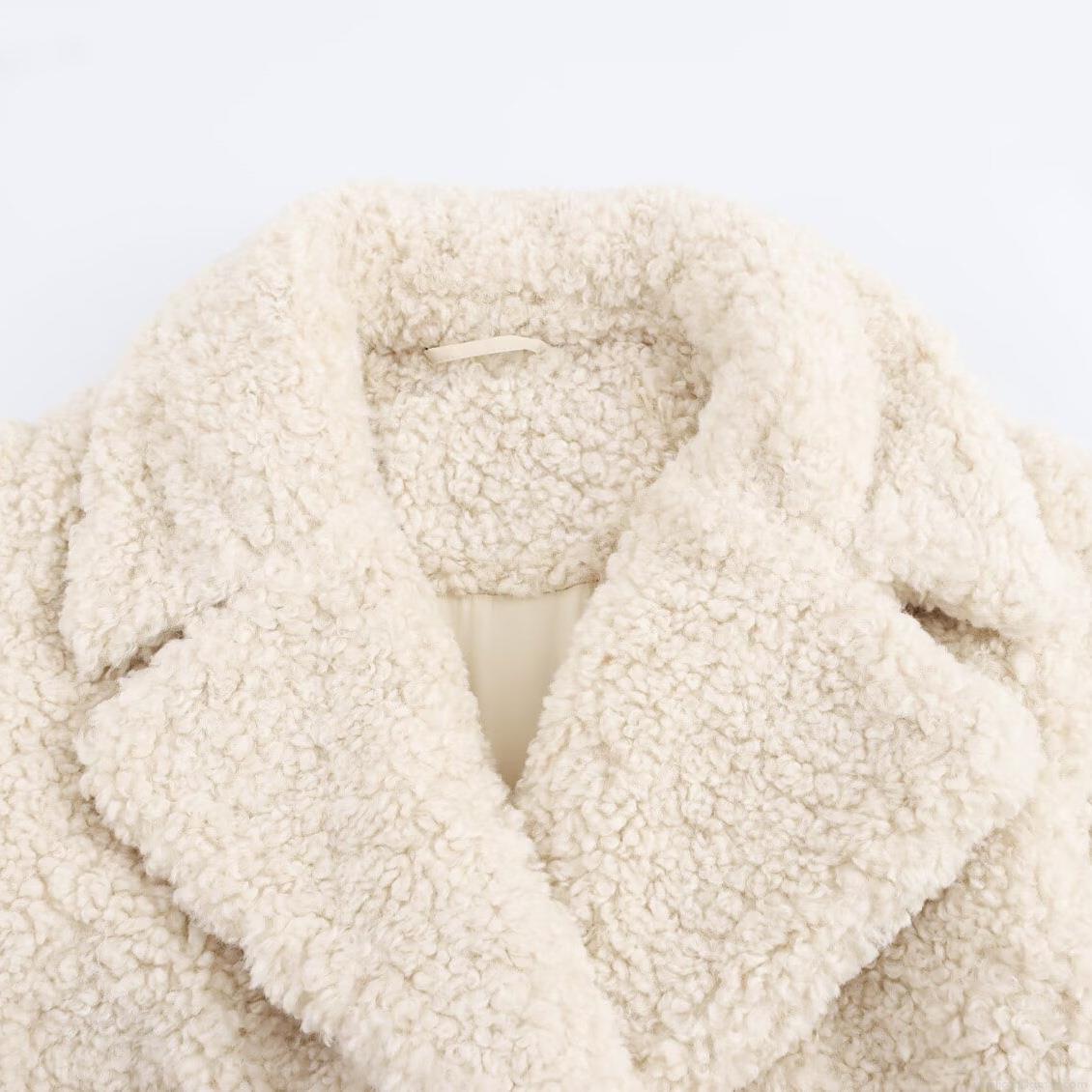 • Women's Faux Fur Teddy Fleece Coat Mid-Length Suit Collar Off-White Warm Winter Outerwear Street Style Loose Jacket For Women