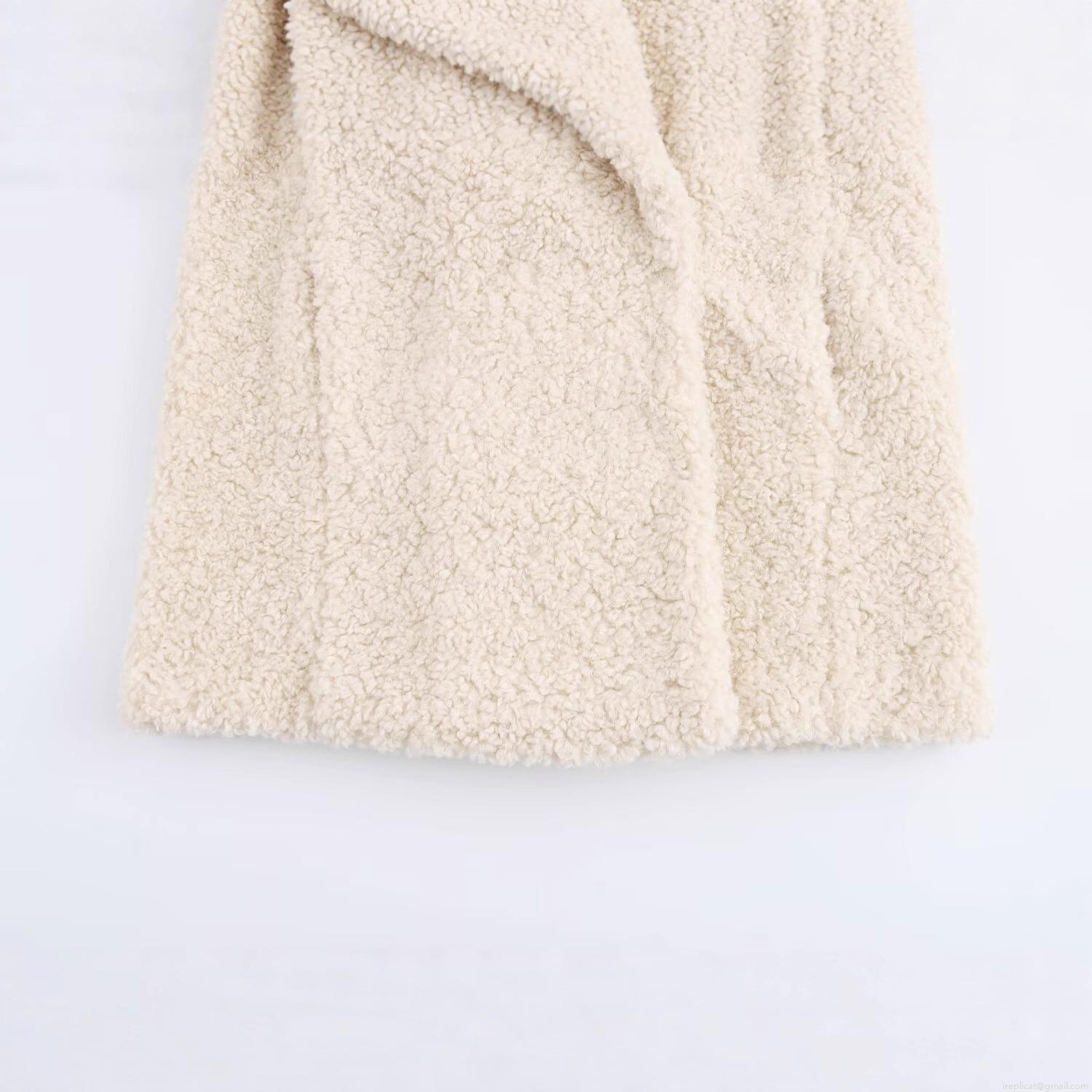 Women's Faux Fur Teddy Fleece Coat Mid-Length Suit Collar Off-White Warm Winter Outerwear Street Style Loose Jacket For Women