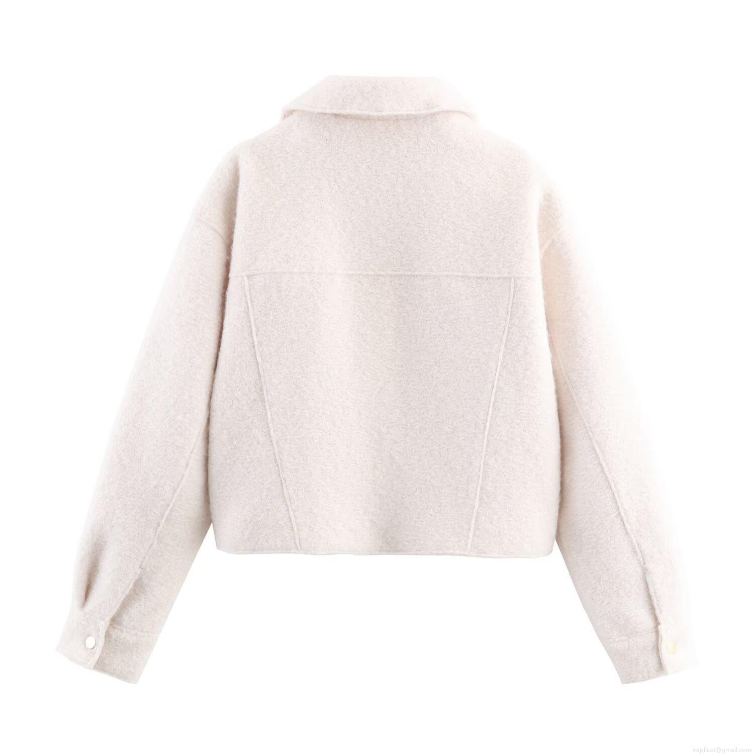 • Women's Faux Lamb Wool Short Jacket Zipper Closure Turn-down Collar With Two Chest Pockets Casual Simple Solid Color Warm Autumn Coat For Women
