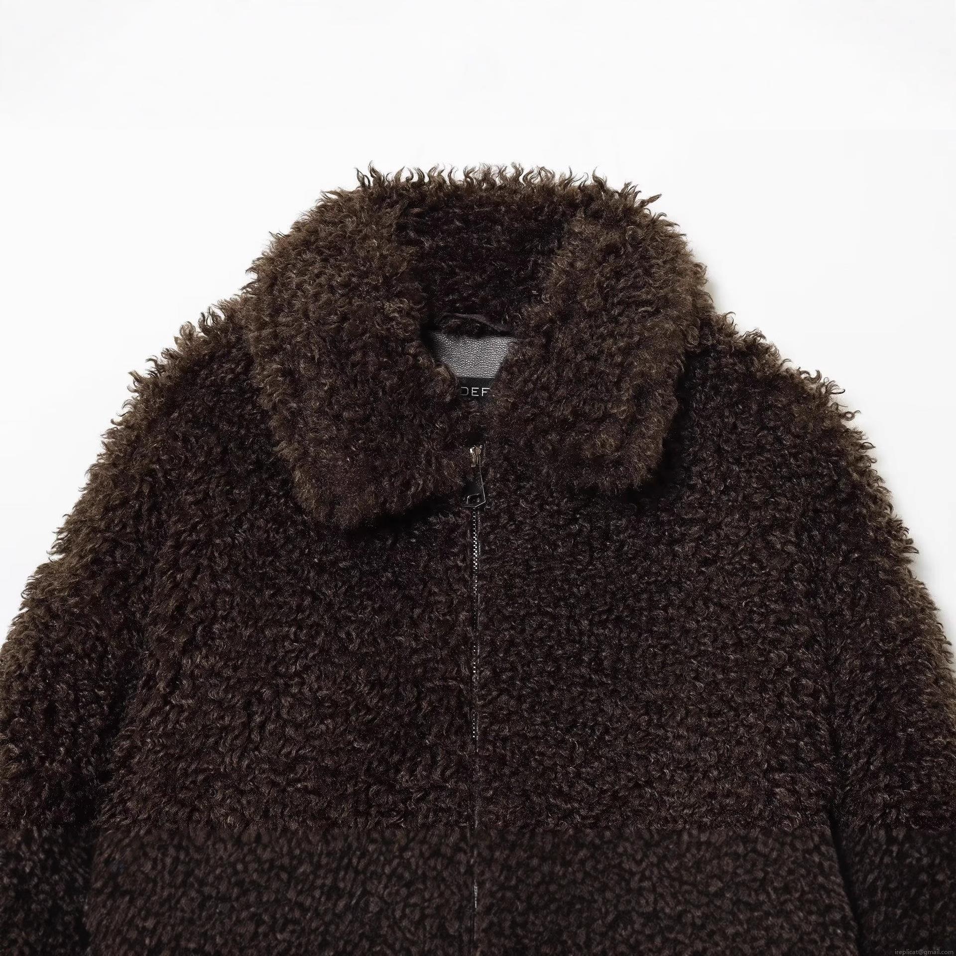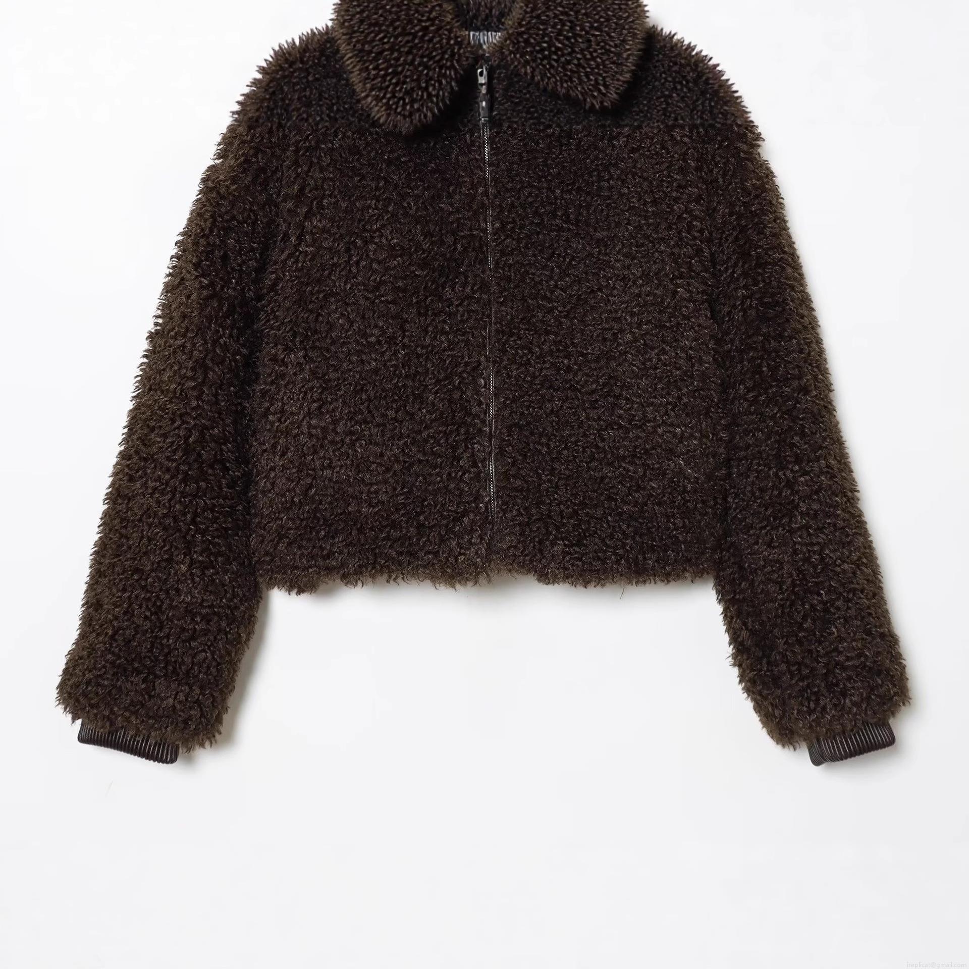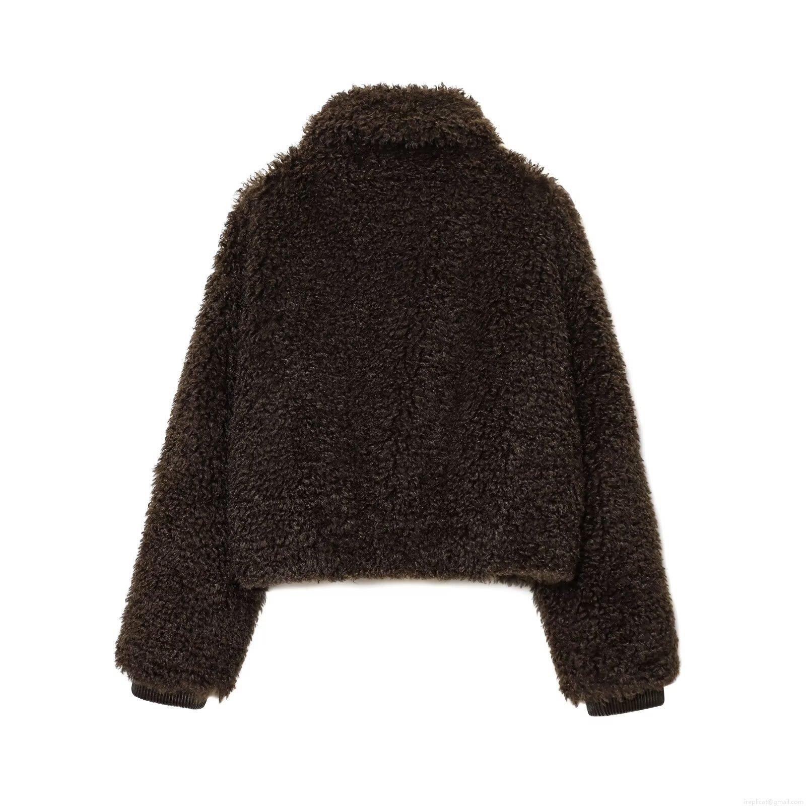 Solid Color, Zipper Decoration, Ribbed Cuffs, Lambswool Texture, Pocket Design