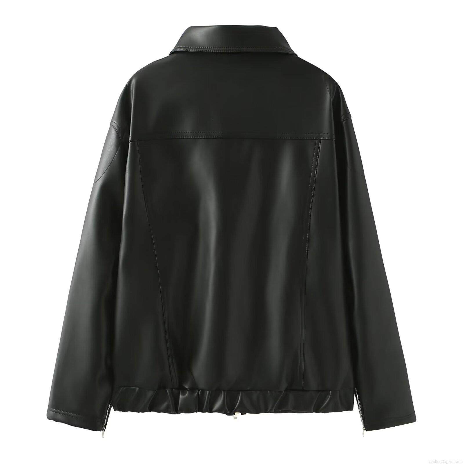 • Women's Faux Leather Biker Jacket Sweet Cool Bowknot Embroidery Lapel Zip-Up PU Leather Jacket With Contrast Stripe Streetwear Long Sleeve Outerwear Coat For Women