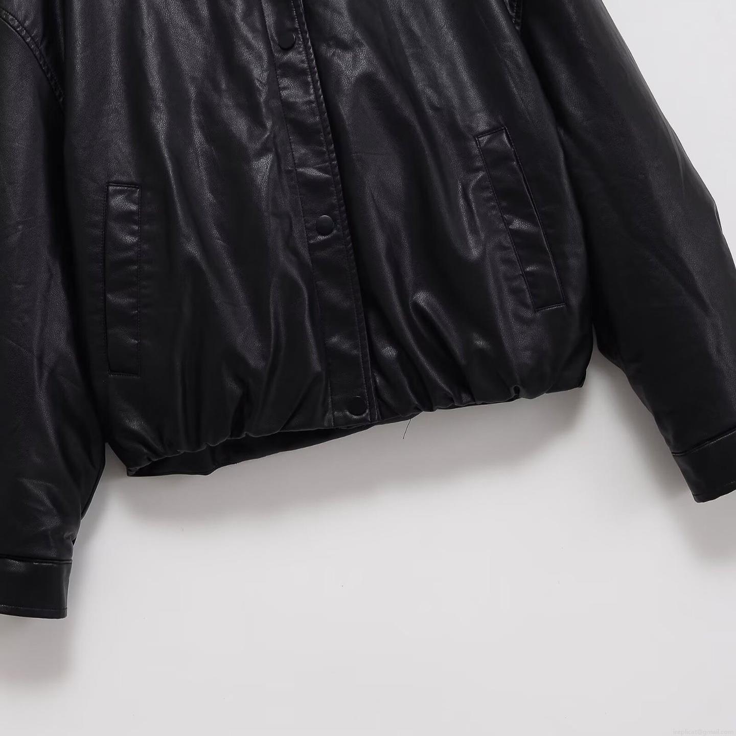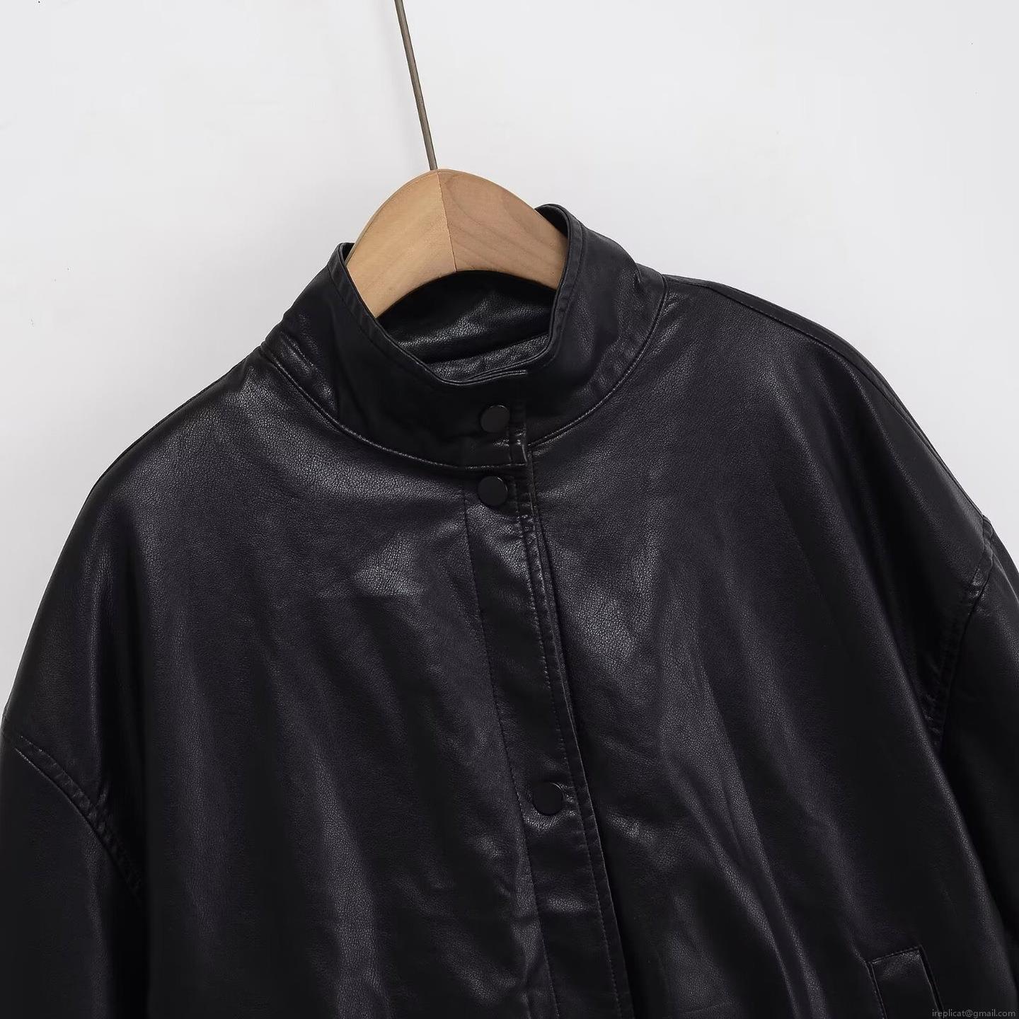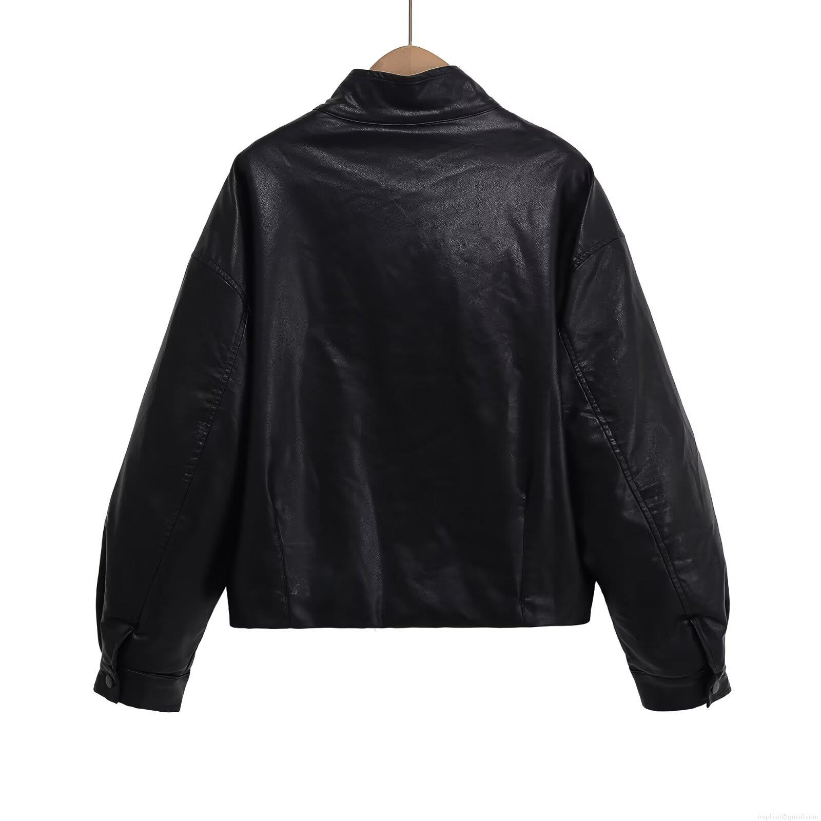 • Women's Faux Leather Bomber Jacket Fashion High Neck PU Pilot Outwear Solid Color Loose Fit Short Jacket With Pocket For Women Streetwear