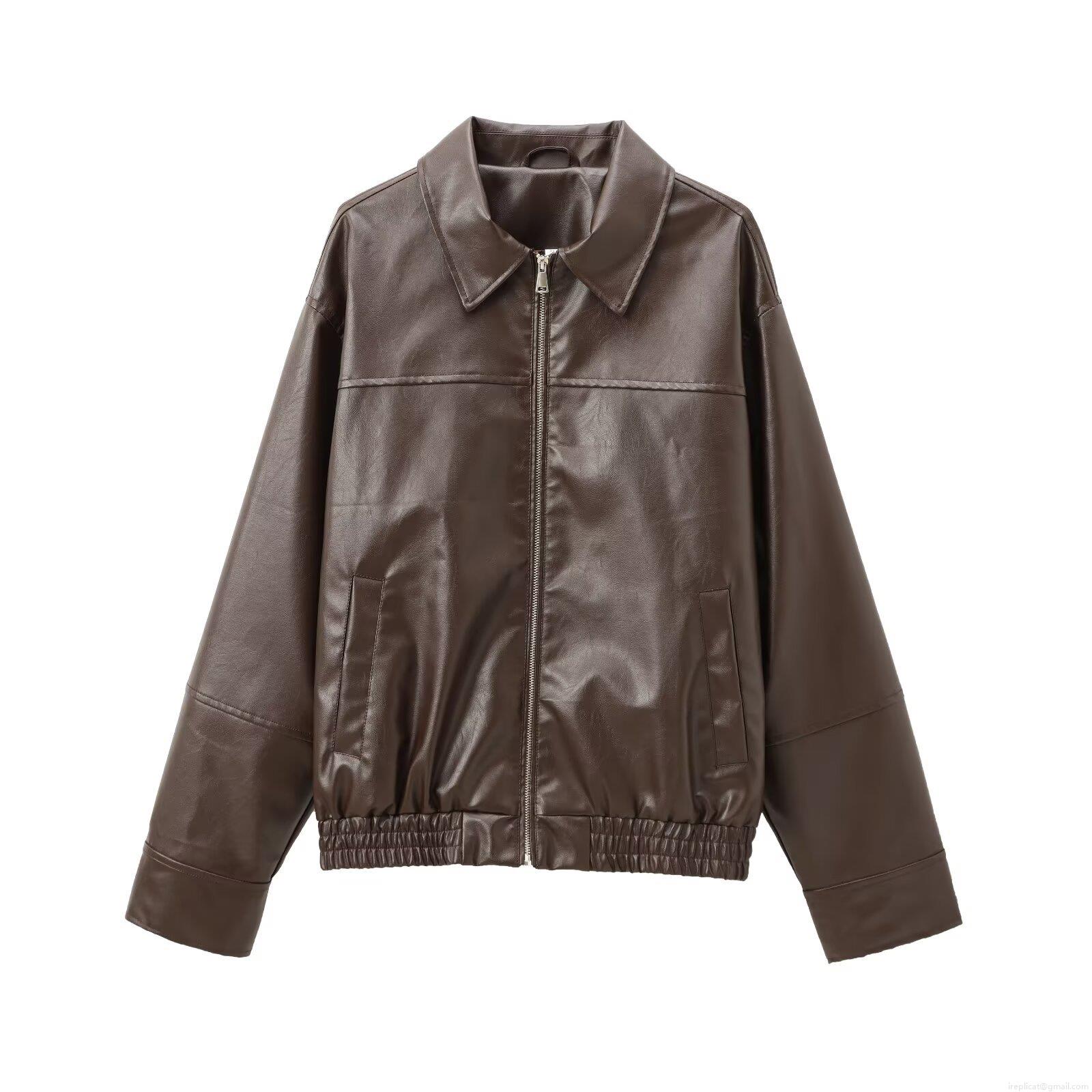 • Women's Faux Leather Bomber Jacket PU Long Sleeve Zipper Flight Coat With Ribbed Hem Cuffs Retro Streetwear Outerwear For Autumn Winter