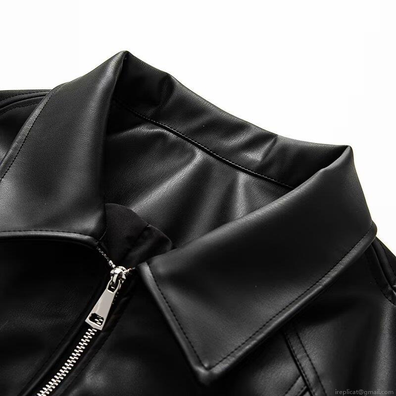 Women's Faux Leather Jacket Black Bow Knot Sleeve Detail Zipper Up Loose Fit PU Biker Moto Coat Streetwear Outerwear For Women