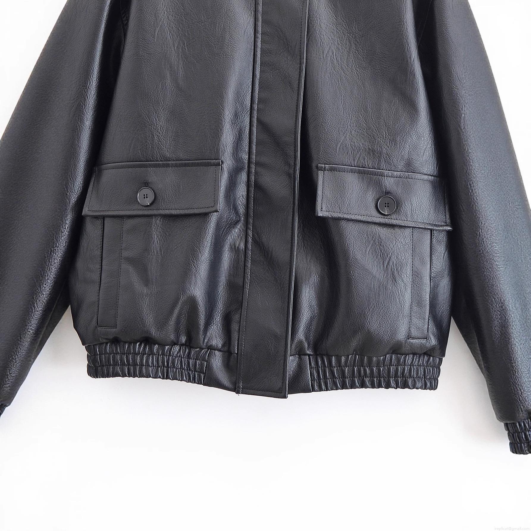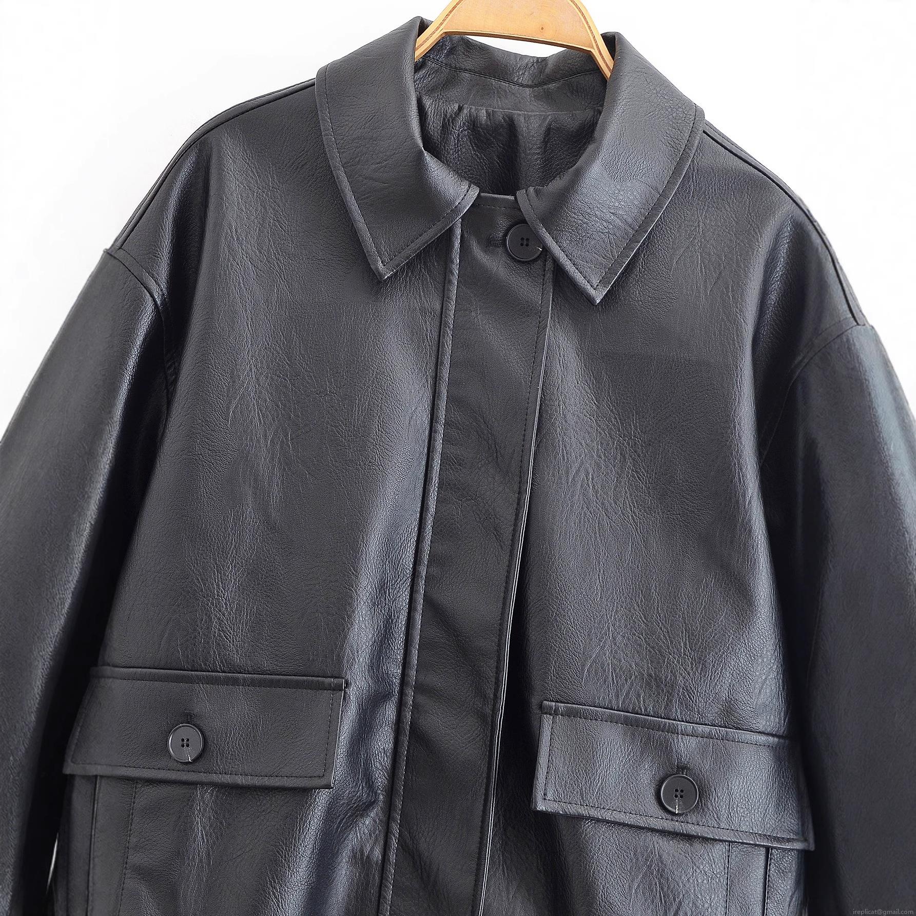 • Women's Faux Leather Jacket Black Lapel Collar Button Up Loose Casual Streetwear Coat With Large Flap Pockets For Autumn Spring Long Sleeve Outwear Fashion Street Style