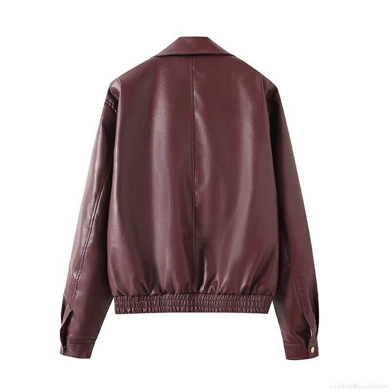 Women's Faux Leather Jacket Wine Red Turn-down Collar Long Sleeve Biker Style PU Outerwear With Metal Zipper For Autumn Fashion Casual Streetwear