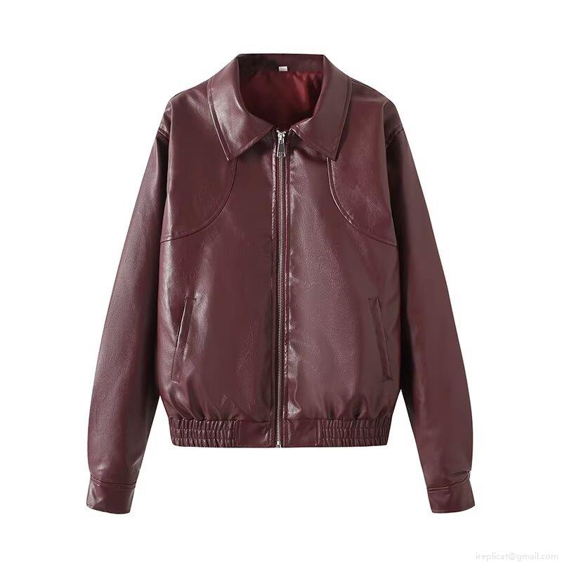 • Women's Faux Leather Jacket Wine Red Turn-down Collar Long Sleeve Biker Style PU Outerwear With Metal Zipper For Autumn Fashion Casual Streetwear