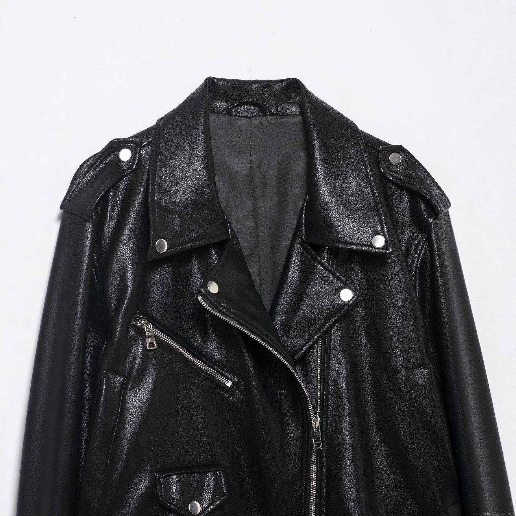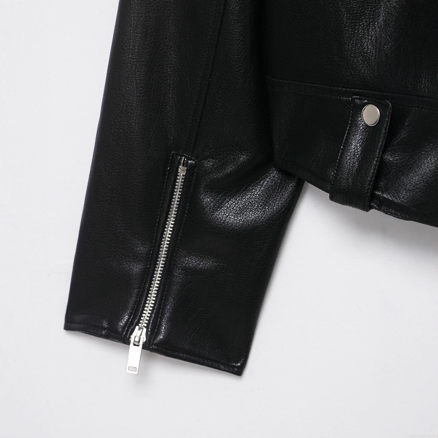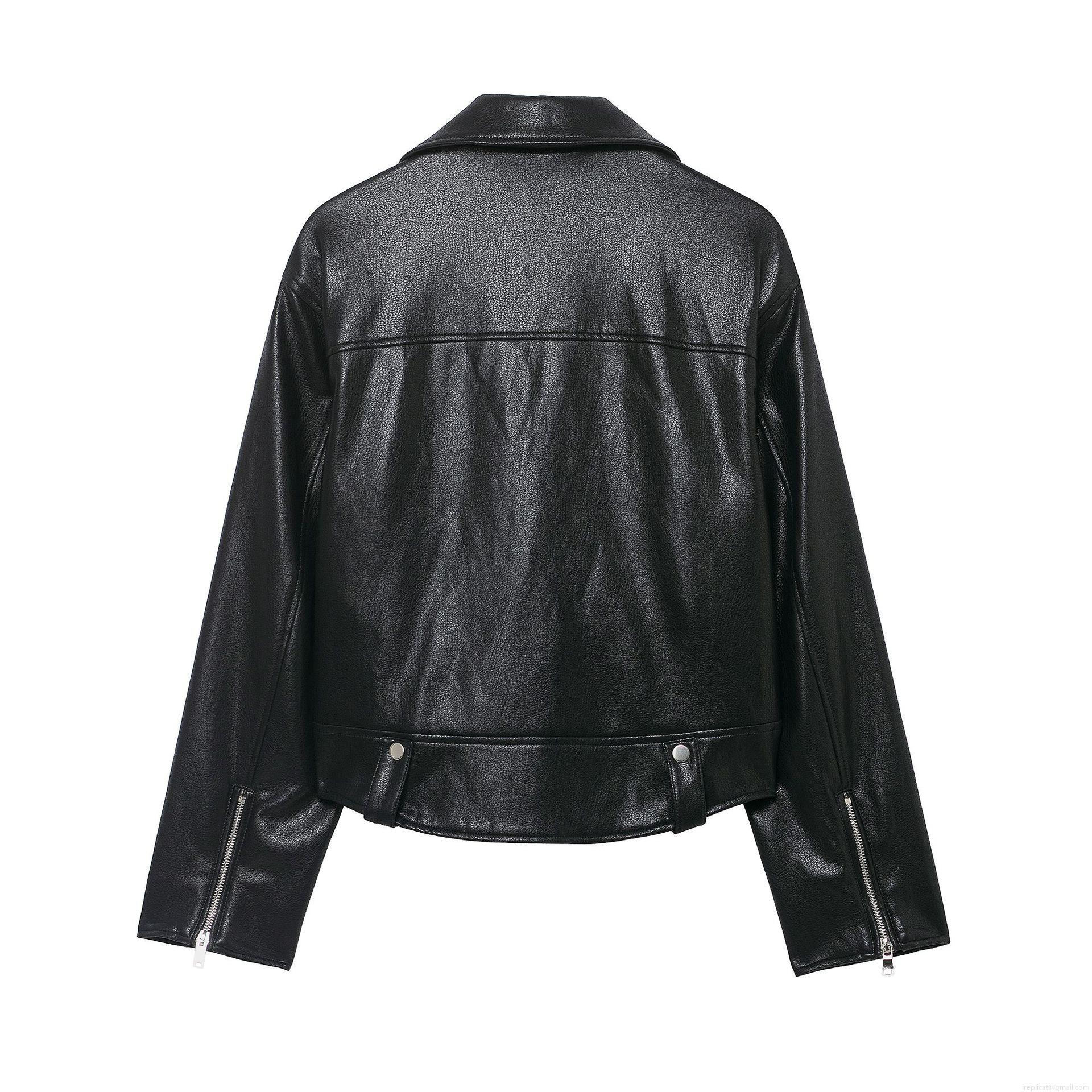 • Women's Faux Leather Moto Biker Jacket Cool Black PU Coat With Zipper Decoration Turn-down Collar Long Sleeve Casual Outwear For Ladies