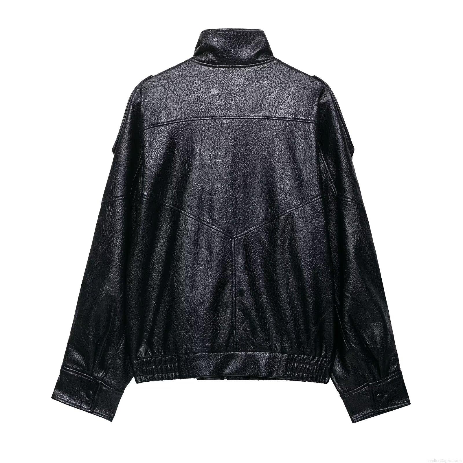 • Women's Faux Leather Moto Jacket Stand Collar Long Sleeve Solid Color Epaulettes Biker Coat Streetwear Outerwear For Women