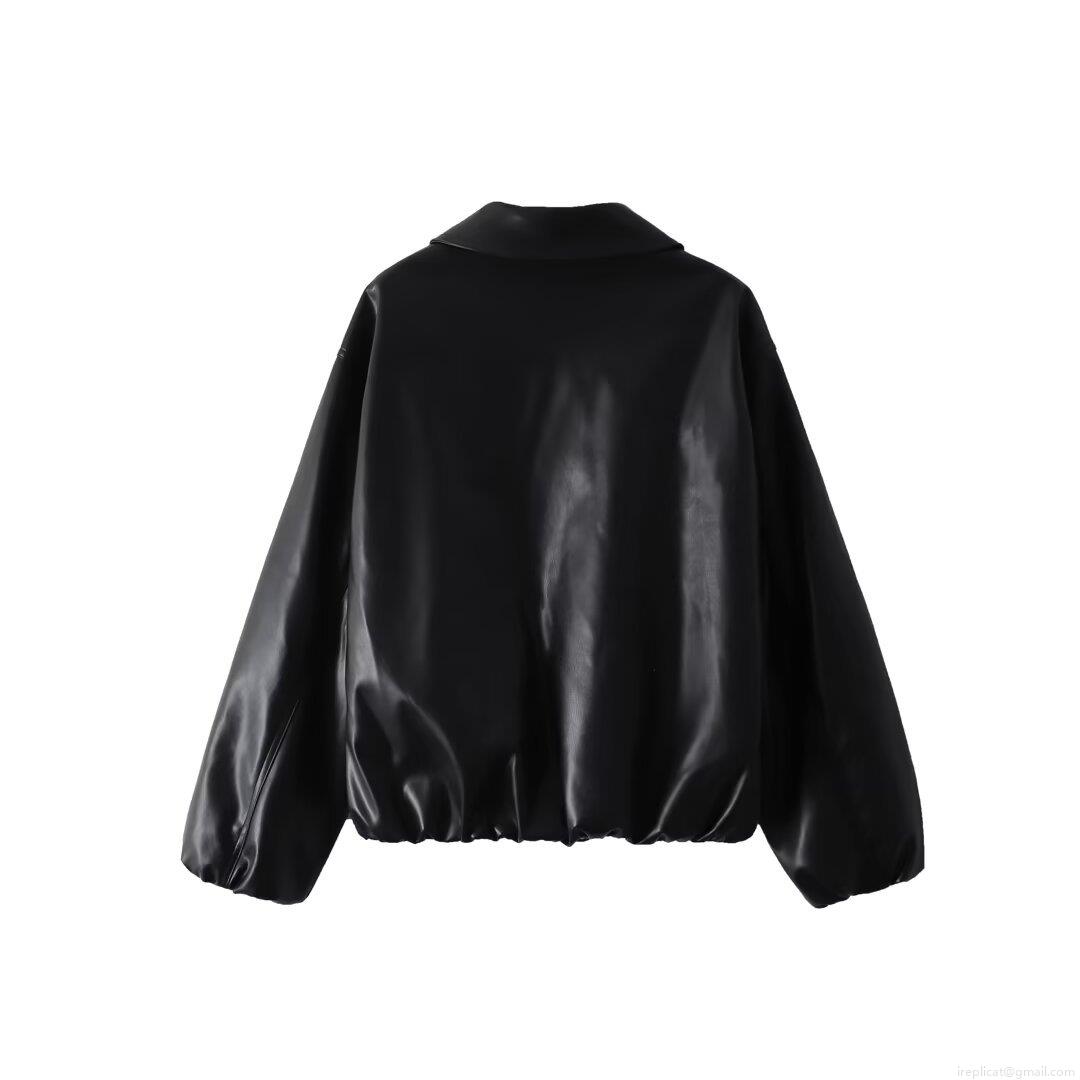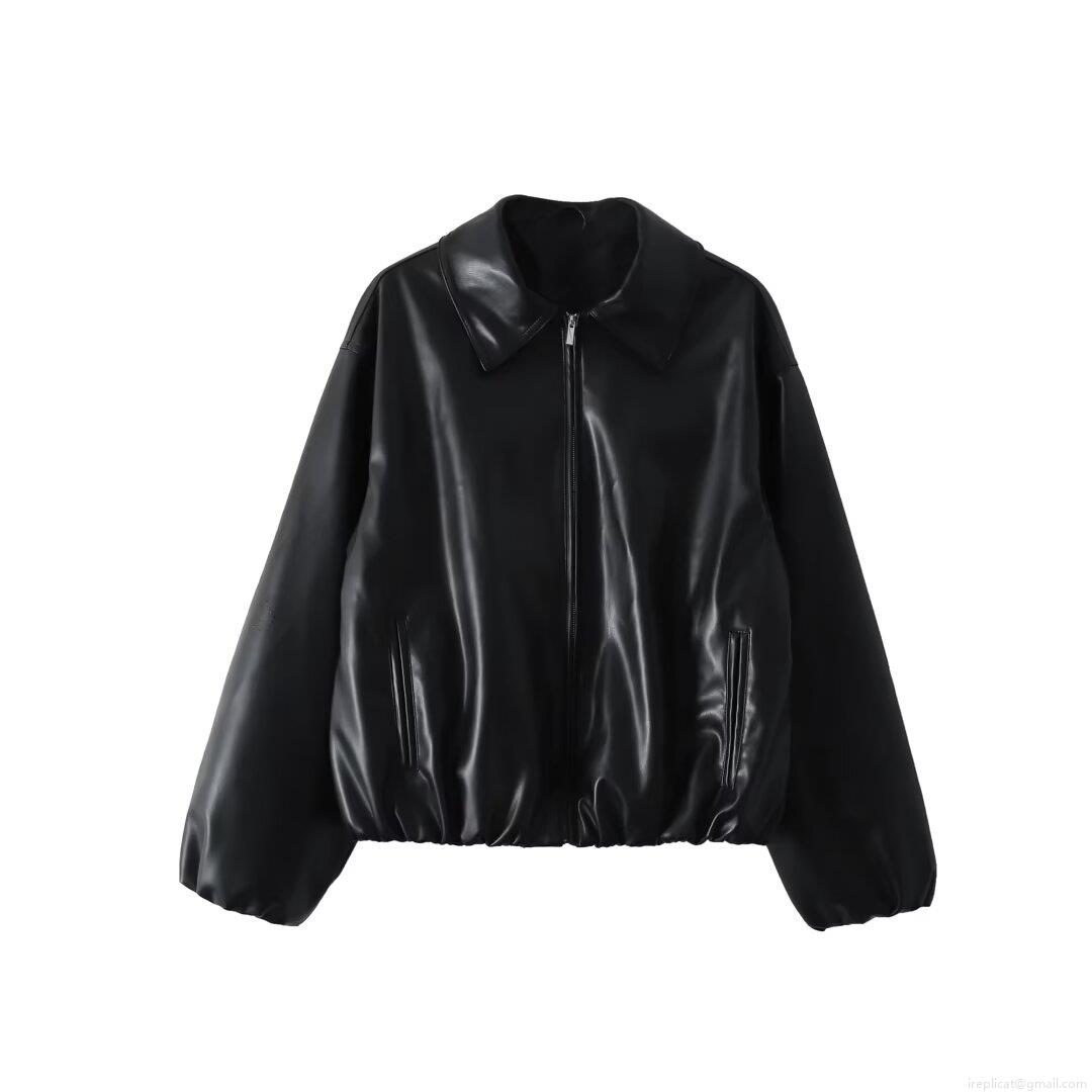 • Women's Faux Leather PU Jacket Long Sleeve Lapel Zipper Outerwear Loose Streetwear Bomber Coat For Autumn Winter Windproof Fashion Lady Moto Jacket