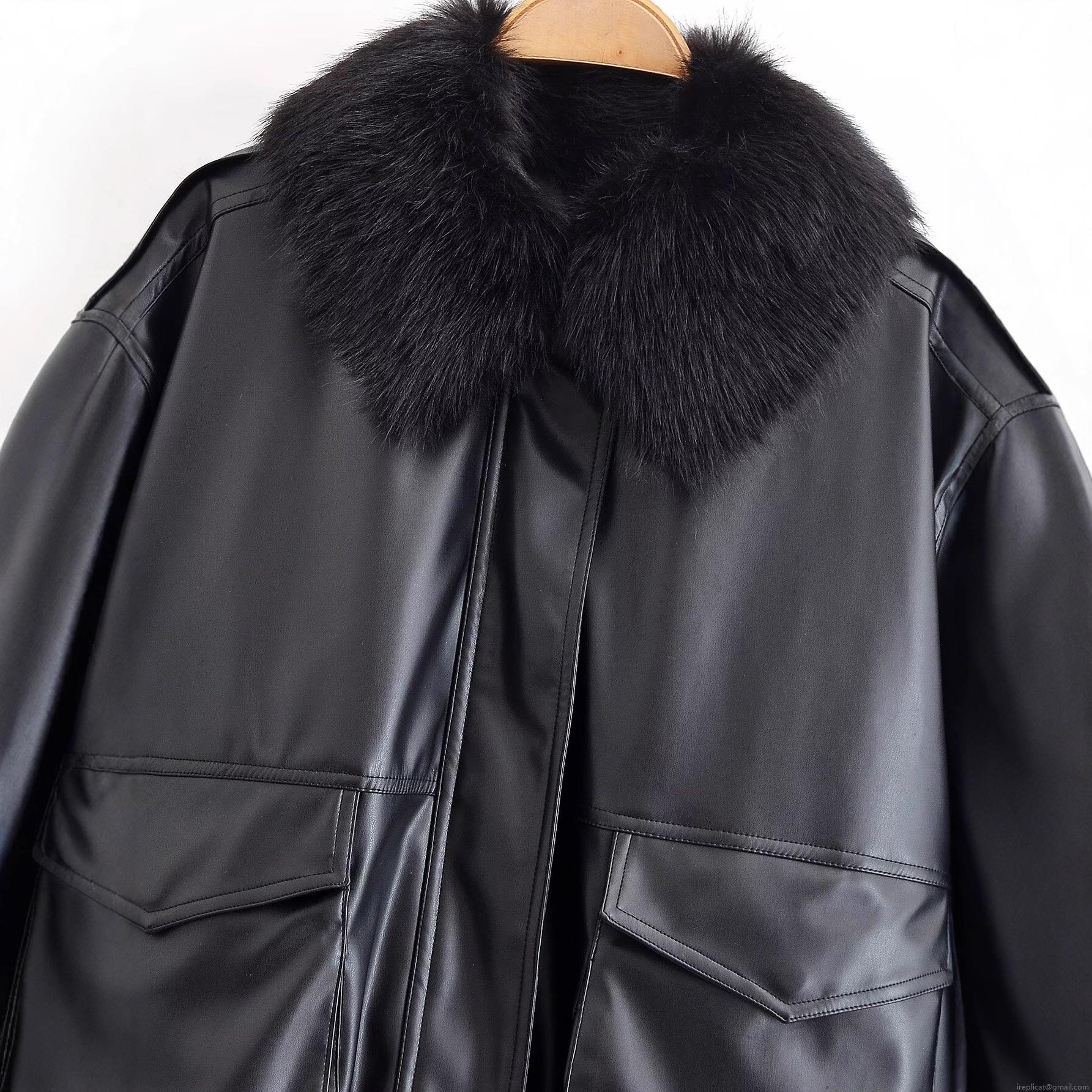 • Women's Faux Leather PU Jacket With Detachable Faux Fur Collar Loose Solid Color Baseball Bomber Coat Casual Streetwear Warm Outerwear For Women