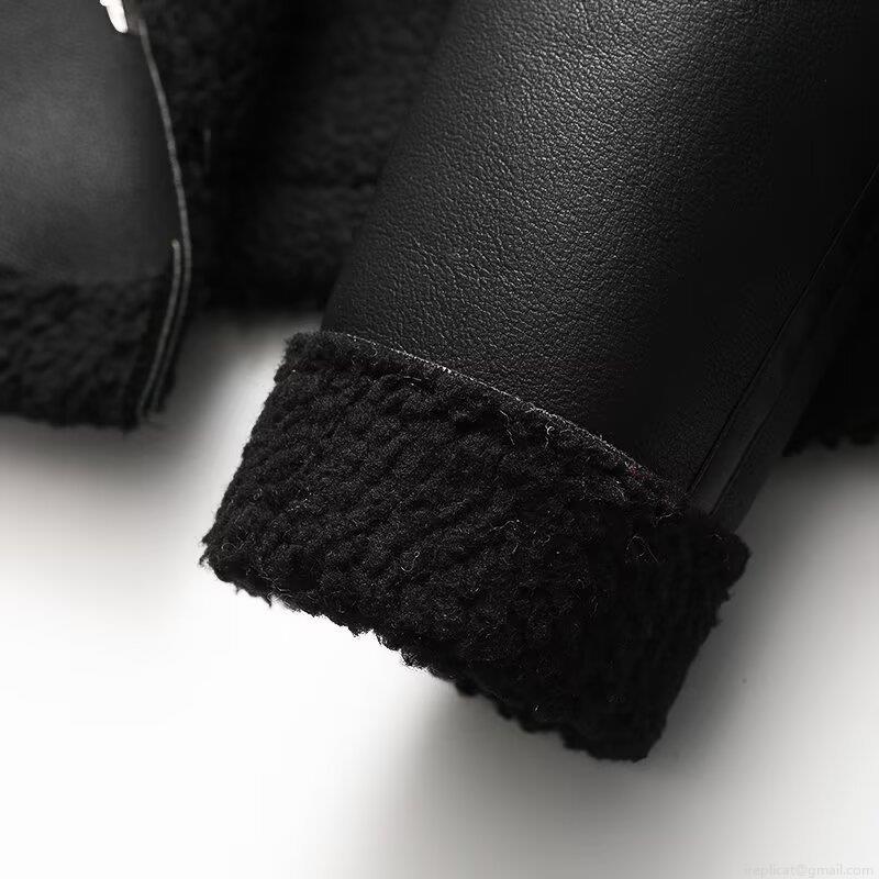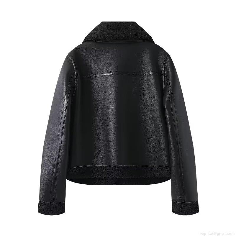 • Women's Faux Leather Shearling Jacket Black PU Moto Biker Coat With Faux Fur Trim Lapel Zipper Long Sleeve Outerwear For Autumn Winter Streetwear