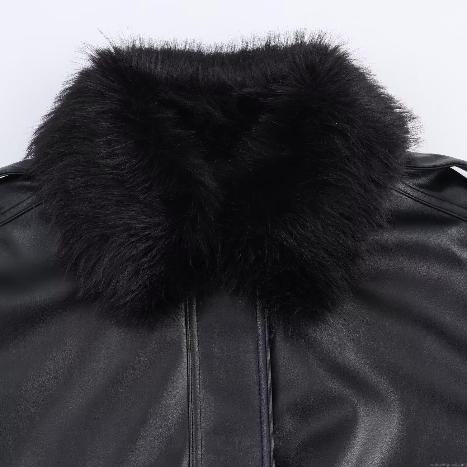 • Women's Faux Leather Suede Jacket With Detachable Faux Fur Collar Loose Casual Gothic Style Long Sleeve Zipper Coat With Pockets For Autumn Winter Streetwear