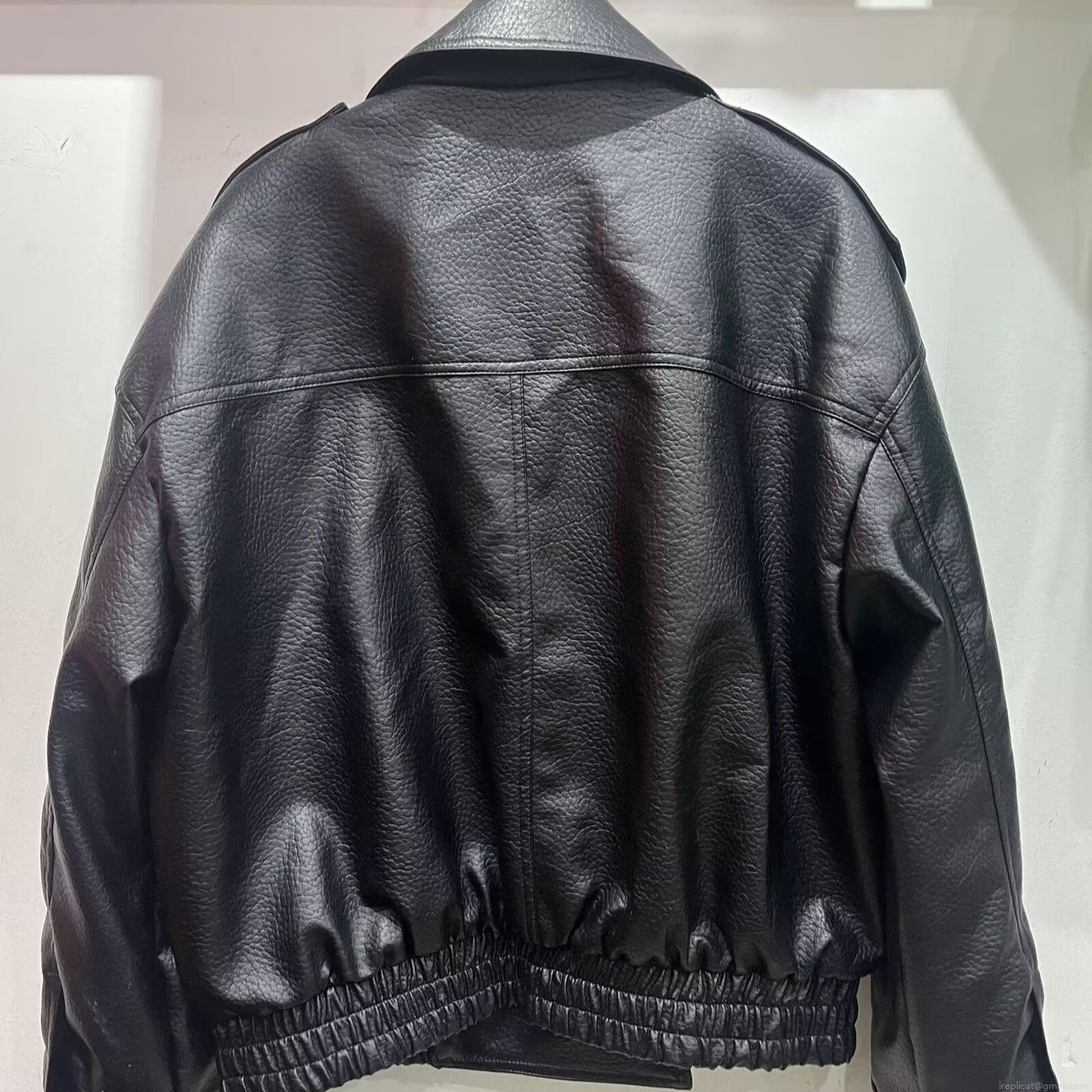 • Women's Faux PU Leather Biker Jacket Oversized Lapel Zipper Long Sleeve Casual Solid Color Short Coat Streetwear Outwear