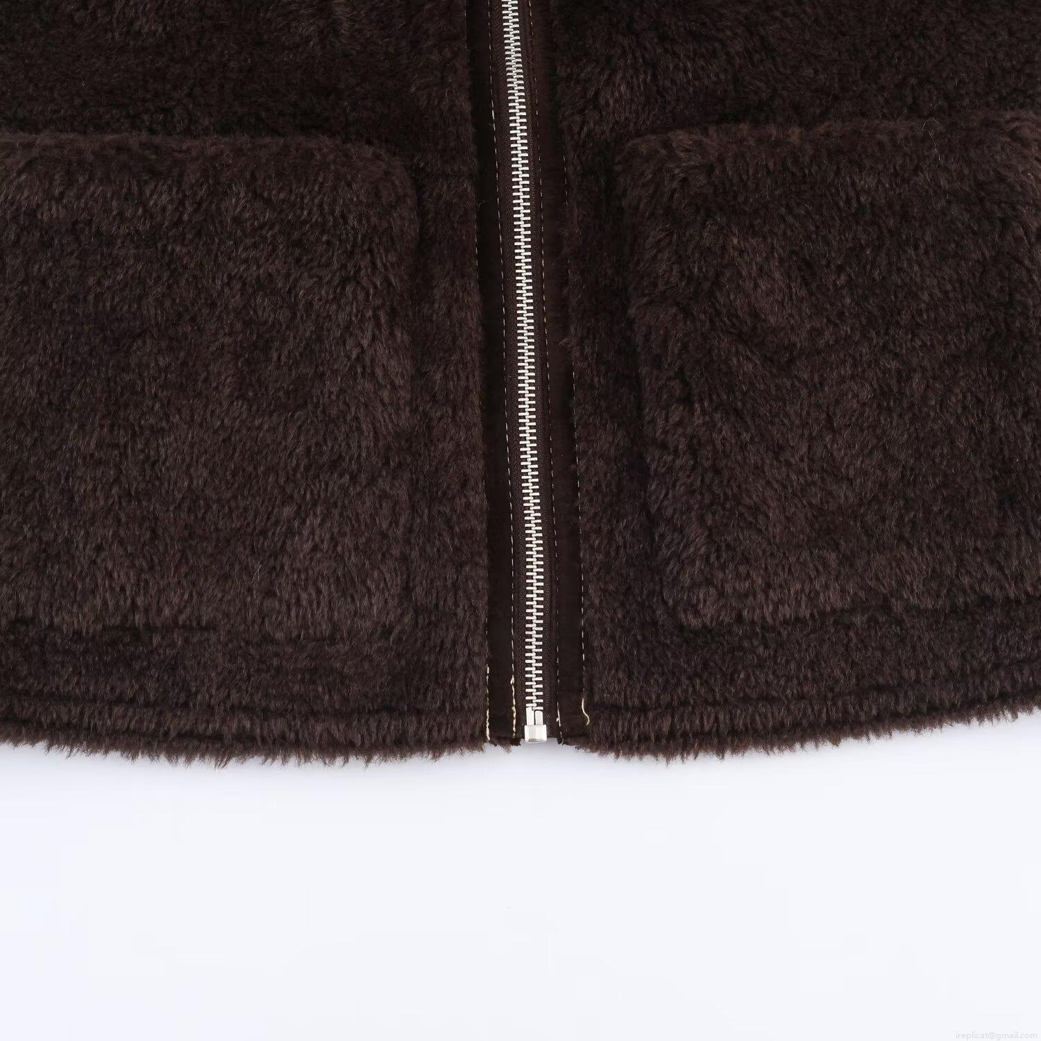 Women's Faux Shearling Fur Integrated Jacket Stand Collar Zipper Loose Fleece Outerwear Casual Warm Autumn Winter Coat With Pockets For Ladies