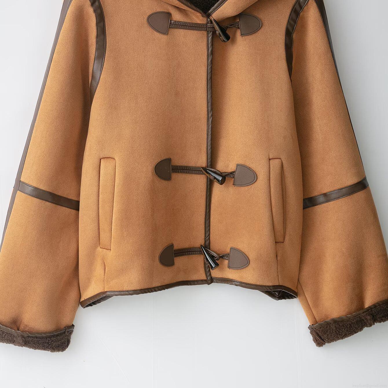• Women's Faux Shearling Hooded Toggle Coat Thick Warm Fleece Lined Suede Jacket Winter Casual Fashion Outerwear With Pockets For Lady