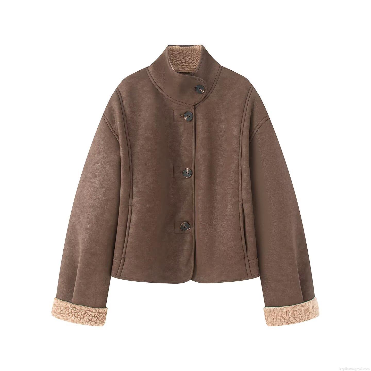 • Women's Faux Shearling Jacket Winter Warm Faux Suede Coat With Lamb Wool Lined Lapel Button Down Solid Long Sleeve Streetwear Outerwear For Lady