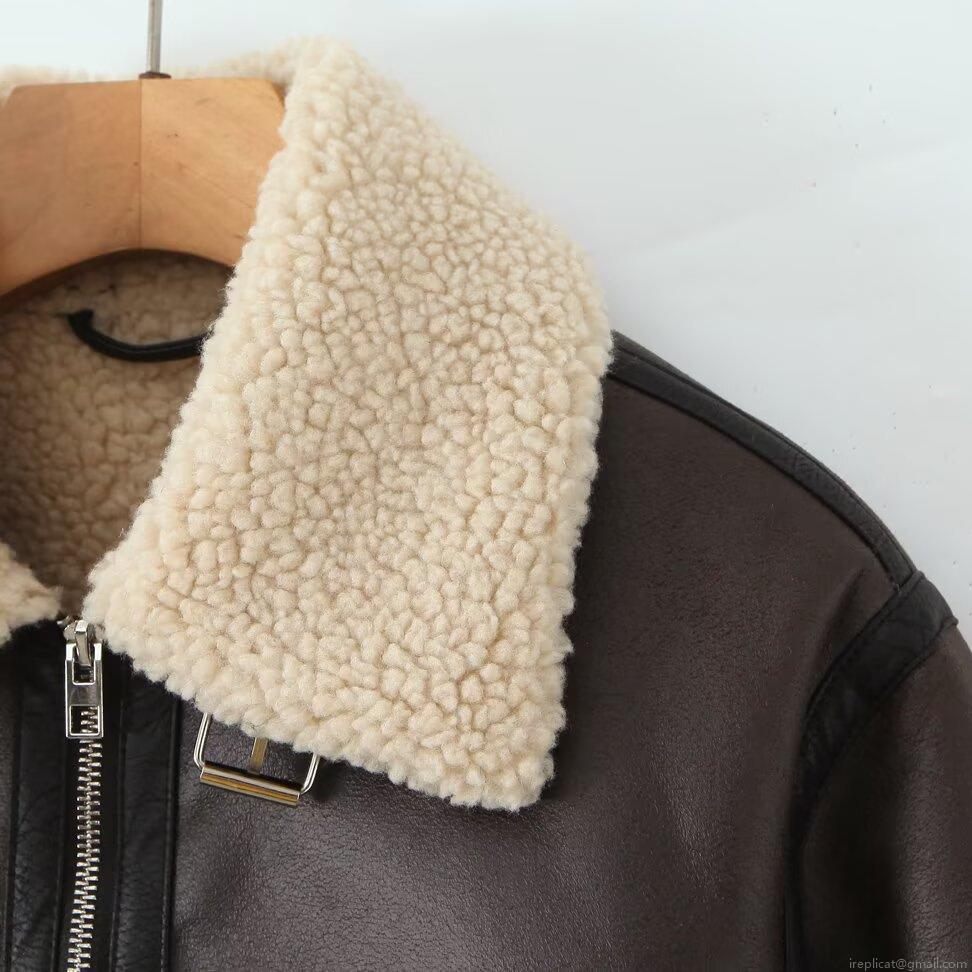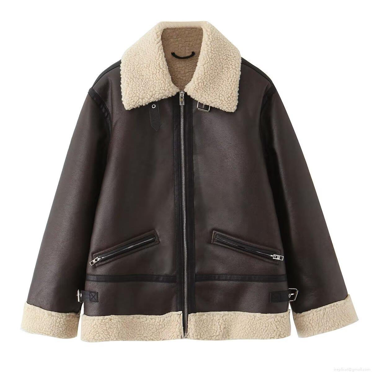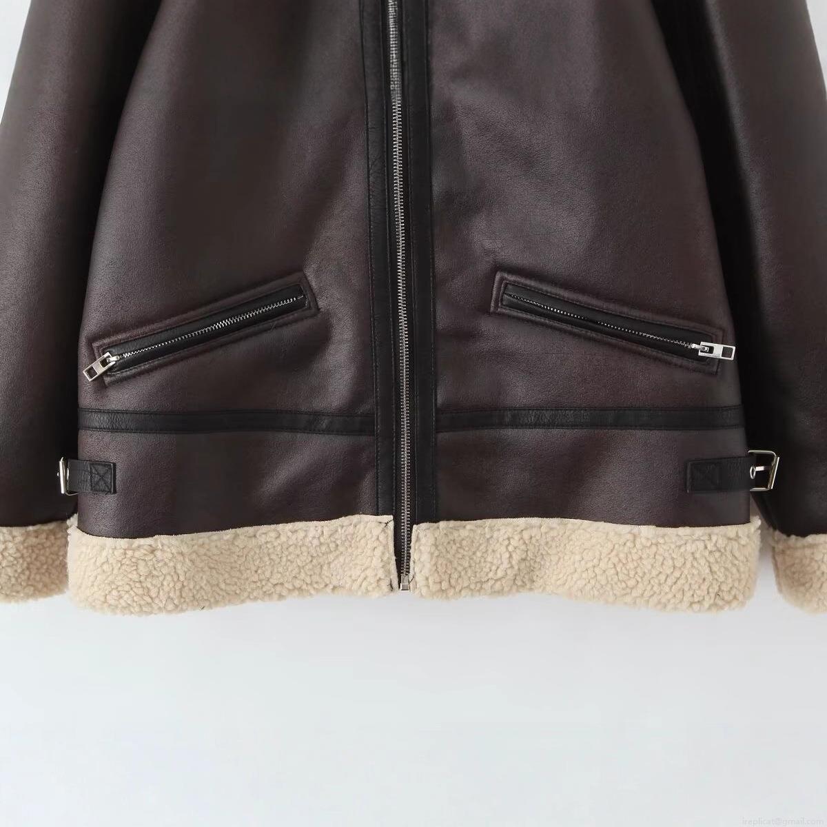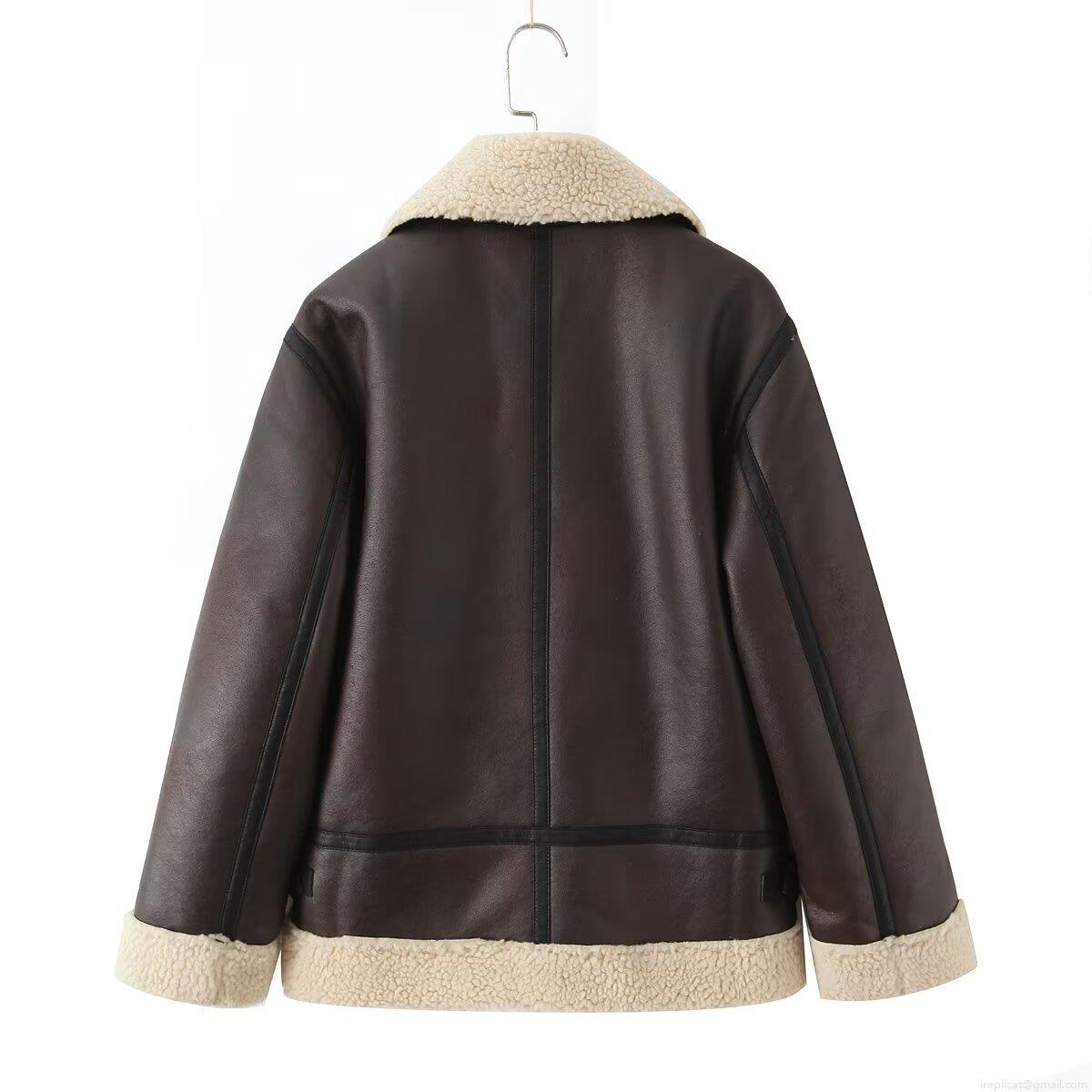 • Women's Faux Shearling Leather Jacket PU Leather Polyester Fleece Lined Warm Windproof Daily Winter Outdoor Streetwear Casual Oversized Lapel Zip Up Coat