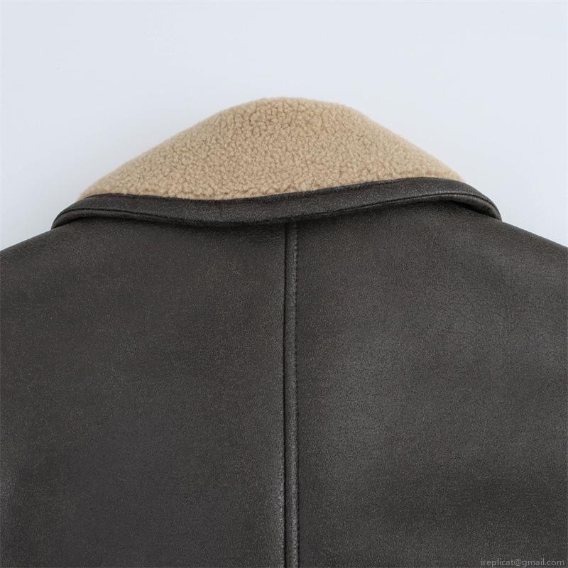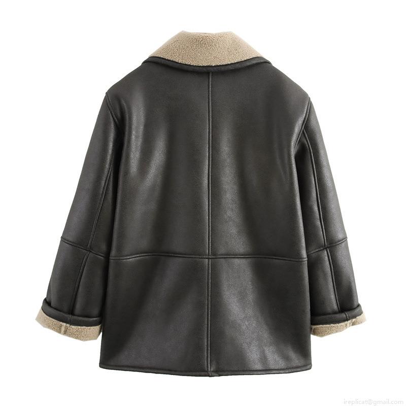• Women's Faux Shearling PU Leather Jacket Double Breasted Warm Winter Coat With Lapel Collar Faux Lamb Wool Lining Outwear Fashion Commuting Long Sleeve Jacket