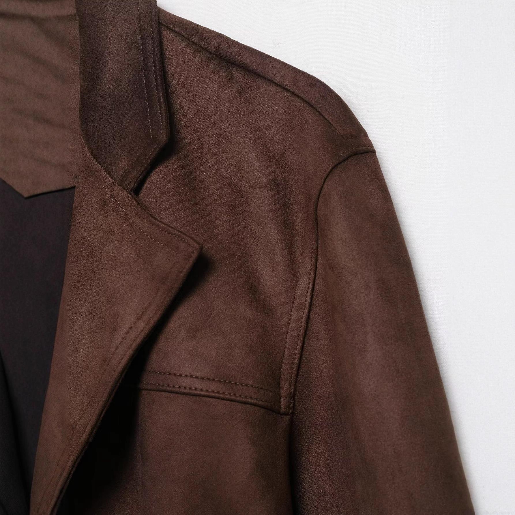 • Women's Faux Suede Belted Jacket Elegant Lapel Long Sleeve Solid Color Coat With Pockets For Autumn Winter Outerwear